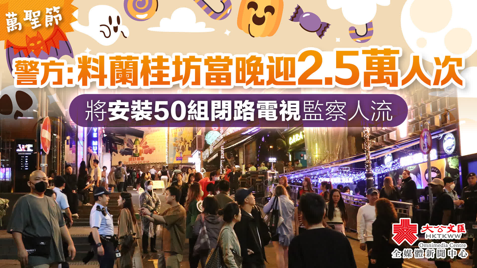 警方估計,本星期四萬聖節當晚,約有2.5萬人流在蘭桂芳慶祝,今年人流密集的地方將會安裝閉路電視,實時提供多角度影響,協助警方制定合適的人群管理方案;此外,警方會利用人流估算系統對現場人流密度作出評估,並盡早識別潛在的安全隱憂作出預防。在有需要的情況下,警方將會通過廣播即時向現場人士發布信息。