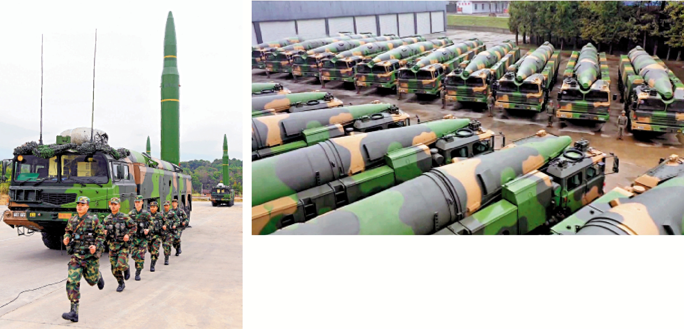 習近平主席日前視察火箭軍駐安徽某旅,該旅展示了超過20輛「關島快遞」東風-26中遠程彈道導彈發射車,並進行導彈起豎備戰演練。如此大規模的展示,在以往歷次大閱兵中也從未出現。