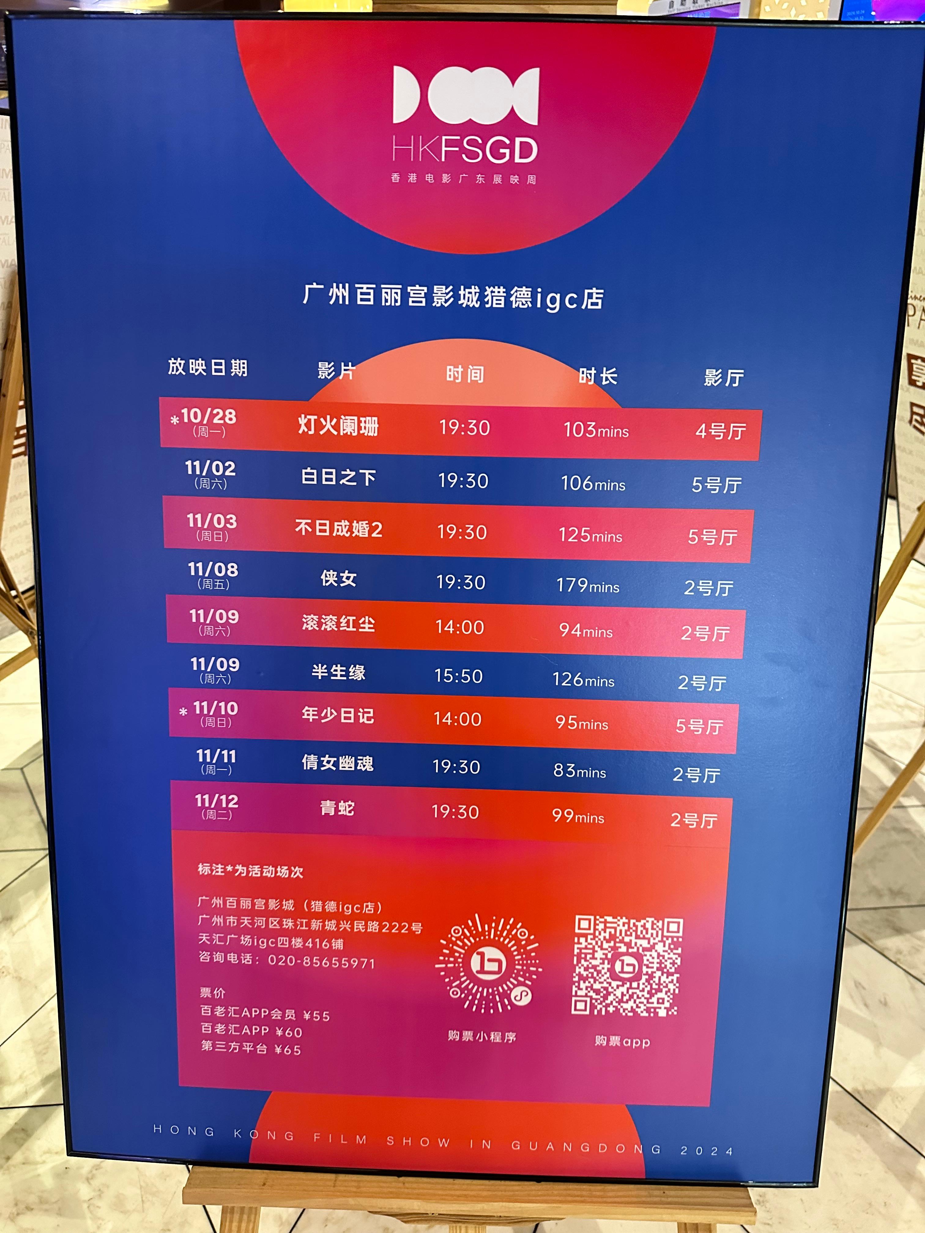 (大公文匯網記者 胡若璋)28日晚,2024「香港電影廣東展映周」吸引廣州、深圳、佛山三地觀眾走進影院,踏上一年一度的香港電影光影之旅。展映將在三城持續到11月12日,展映精選片目包括新晉導演作品《年少日記》《燈火闌珊》《白日之下》《不日成婚2》與文學經典改編之作《倩女幽魂》《俠女》《滾滾紅塵》《青蛇》《半生緣》,共9部影片。記者獲悉,電影展映之外,也會有相關主創和演員和觀眾映後交流,以及學者、影評人沙龍講座等活動,豐富觀眾對香港電影了解的方式。