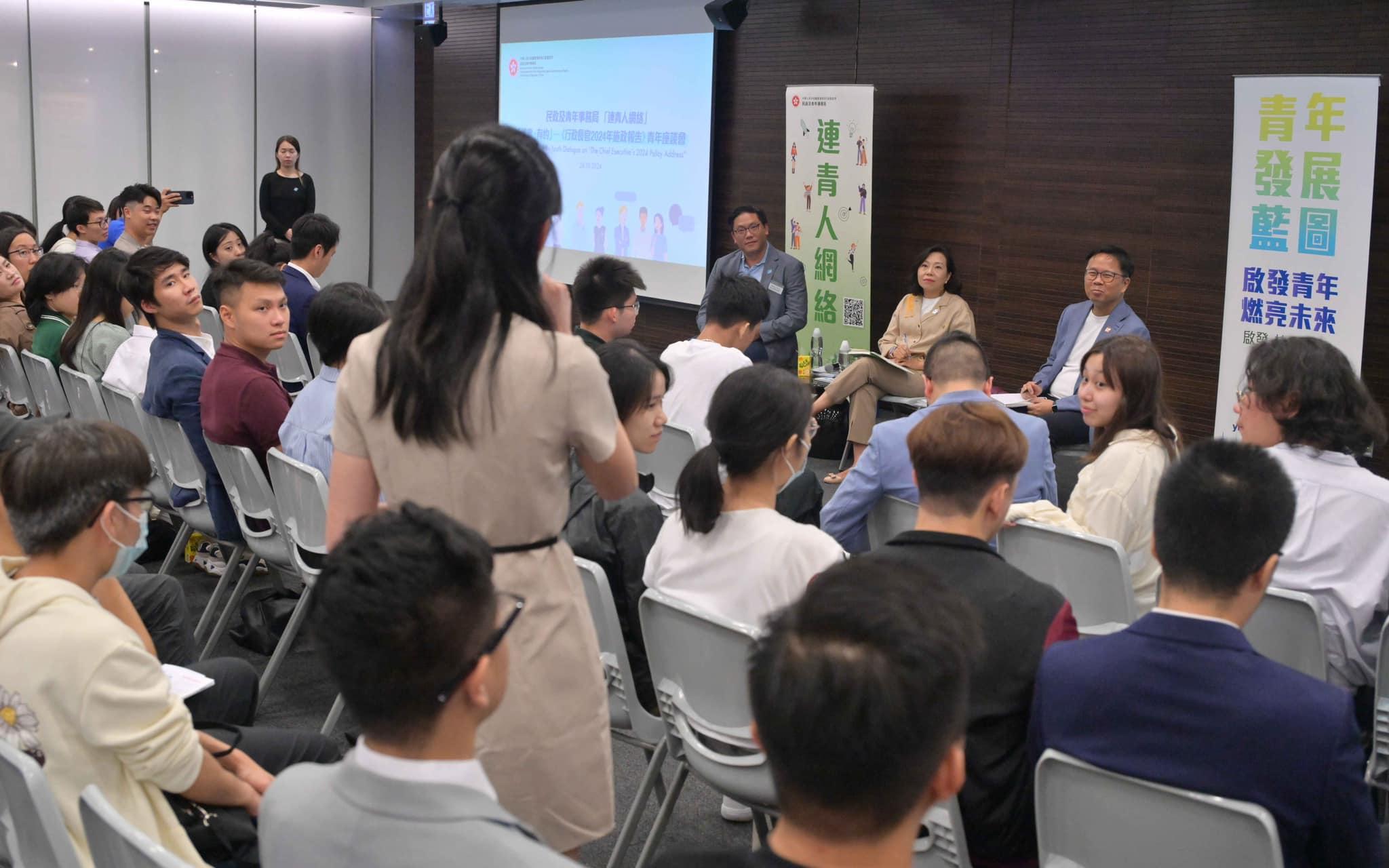 局長於座談會上向「連青人網絡」會員講解《施政報告》內與青年發展相關的重點工作,包括設立「青年驛站」旅舍、設置「連青人網絡」實體互動平台、於青年廣場開闢全新互動空間及設立視頻工作室等,並且向大家預告第2屆「青年發展高峰論壇」將於2025年下半年舉辦,鼓勵青年朋友積極參與!