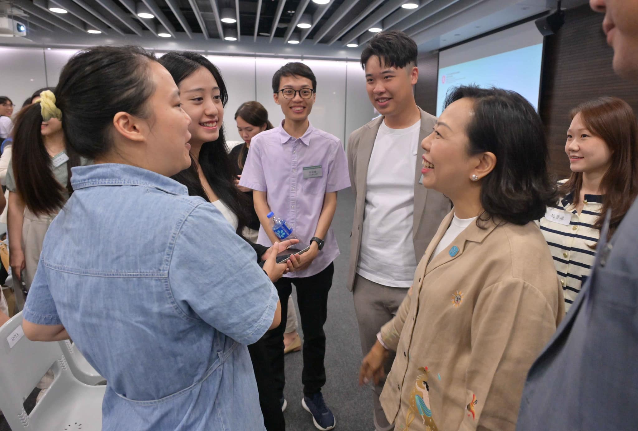 一眾青年參加者在交流環節上都踴躍分享意見和想法,包括就青年廣場開闢全新互動空間的用途和同設施提供建議,局長、副局和專員亦邀請大家繼續參與民青局「連青人網絡」所舉辦的青年發展活動,日後就可以常見面,多交流。