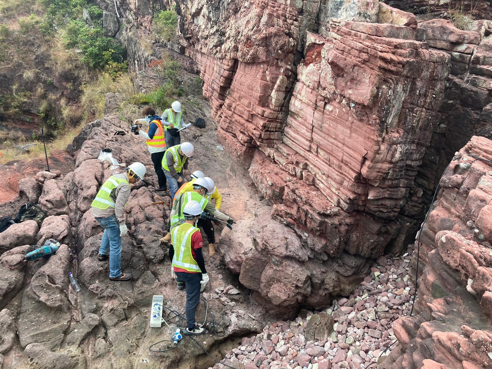 大公文匯全媒體報道,香港早前宣布首次發現恐龍化石,經初步清修後自上周五(25日)在文物探知館展出,至今已錄得近5600參觀人次。發展局今日(30日)在社交平台發文,並分享多張赤洲島挖掘現場相片。