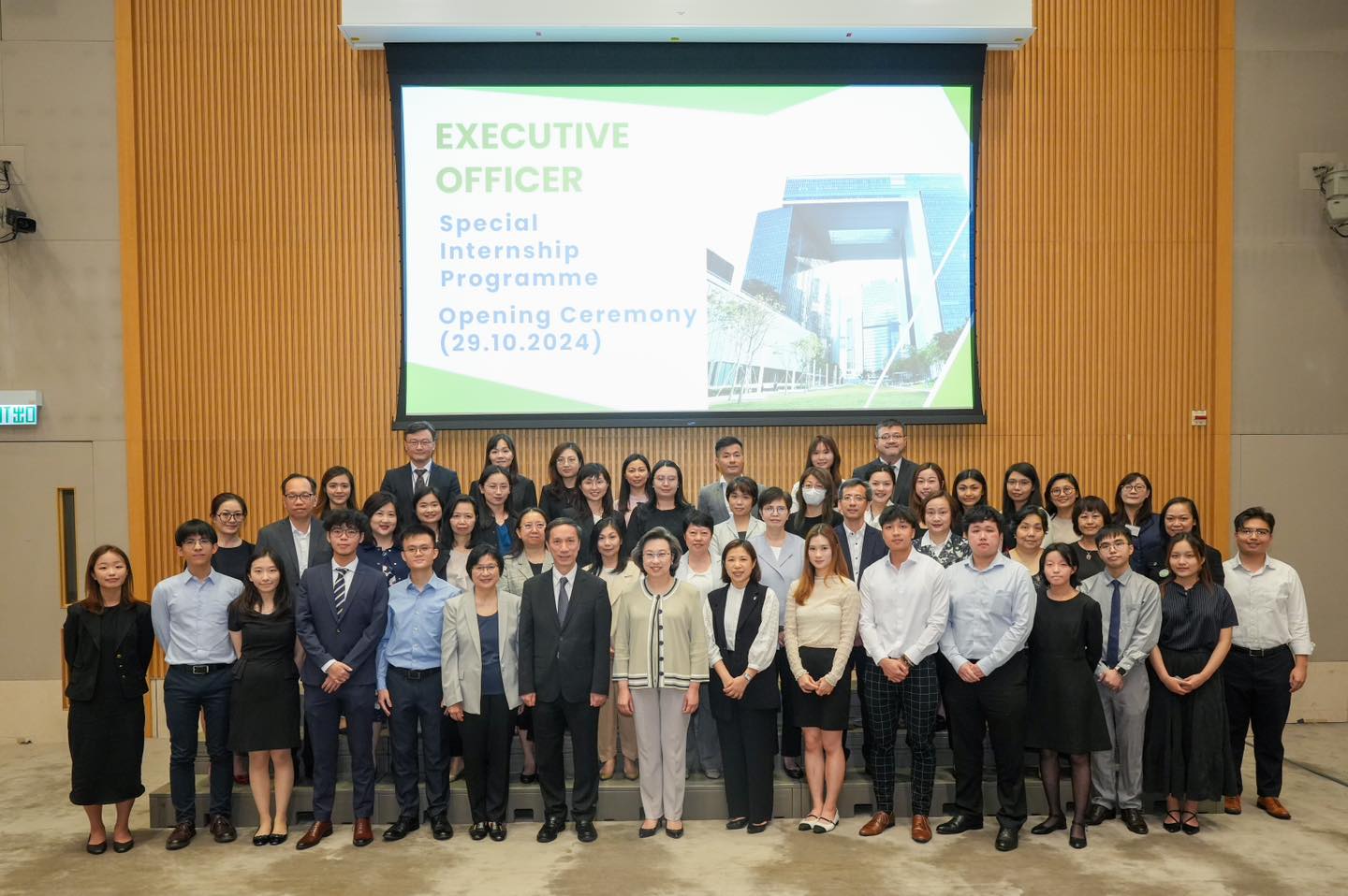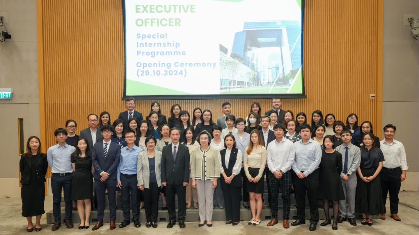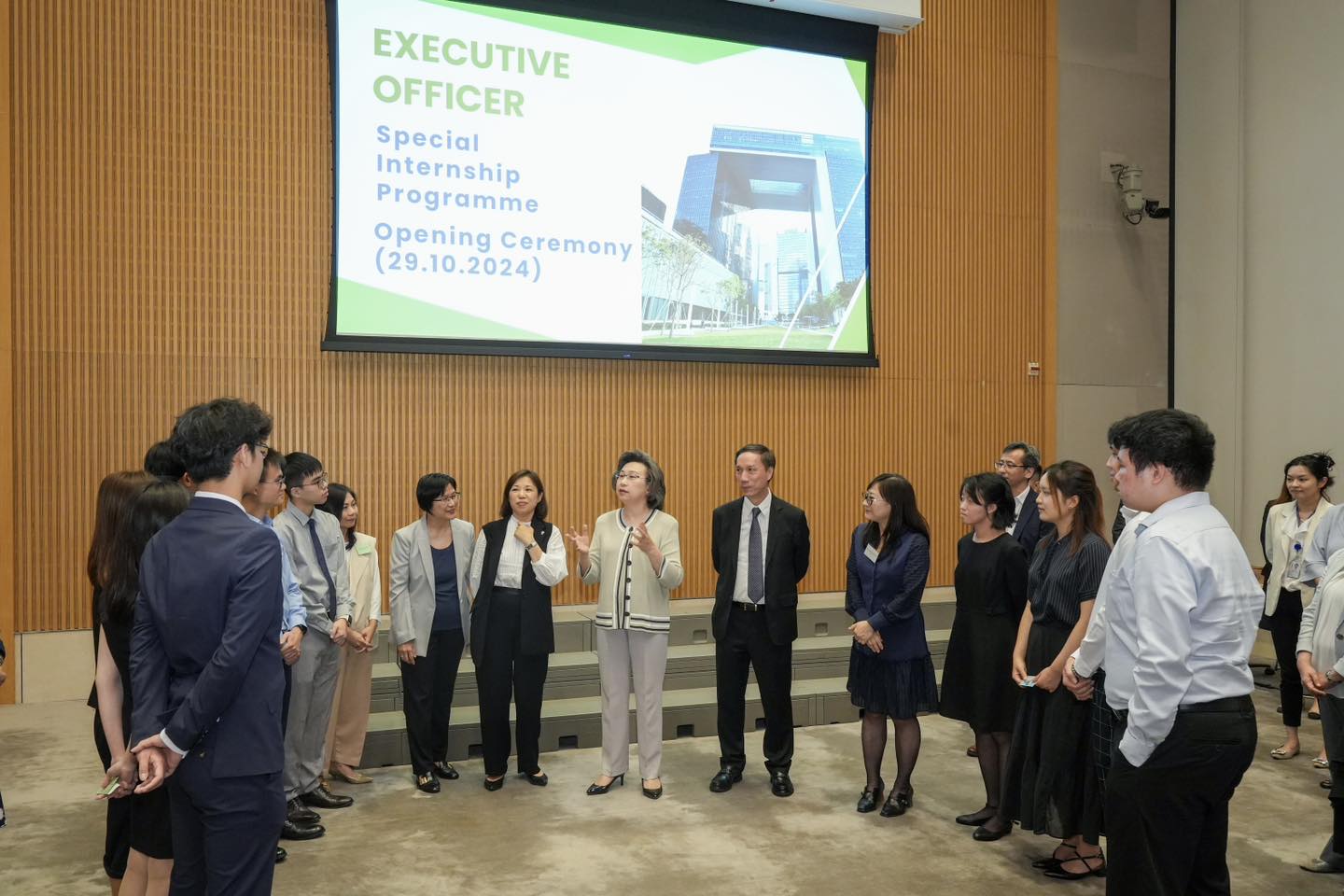 昨日(29日)下午,EO職前實習計劃舉行開學禮,楊何蓓茵、一般職系處長Hermes、高級首席行政主任(一般職系)Iris等人出席,見證在2023-24年度的招聘過程中,經過關斬將脫穎而出的10多名準二級行政主任正式開展首屆職前實習計劃。楊何蓓茵表示,有條件取錄大學三年級學生,也再次體現政府作為全港最大僱主,為年輕人提供多元化就業機會的決心和誠意。