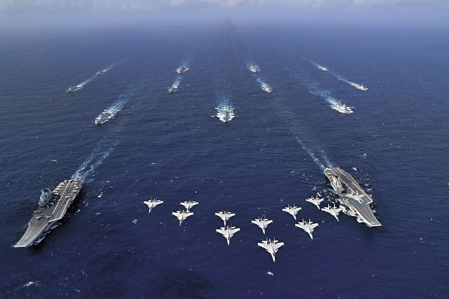 (香港文匯報記者 葛沖 北京報道)近日,遼寧艦編隊完成遠海實戰化訓練,並在南海某海域與山東艦編隊首次開展了雙航母編隊演練,錘煉提升航母編隊體系作戰能力。訓練期間,編隊官兵全程保持高度戒備,隨時反應的作戰狀態。雙航母編隊演練中,多架殲15戰機已經完成出動,準備飛赴預定空域展開實戰化演練。專家指出,一加一遠遠大於二 ,「雙艦合璧」既初顯了中國航母戰鬥群的整體實力,同時亦為未來新航母戰鬥群加入現役,形成戰鬥力、保障力提供了有效的支撐。