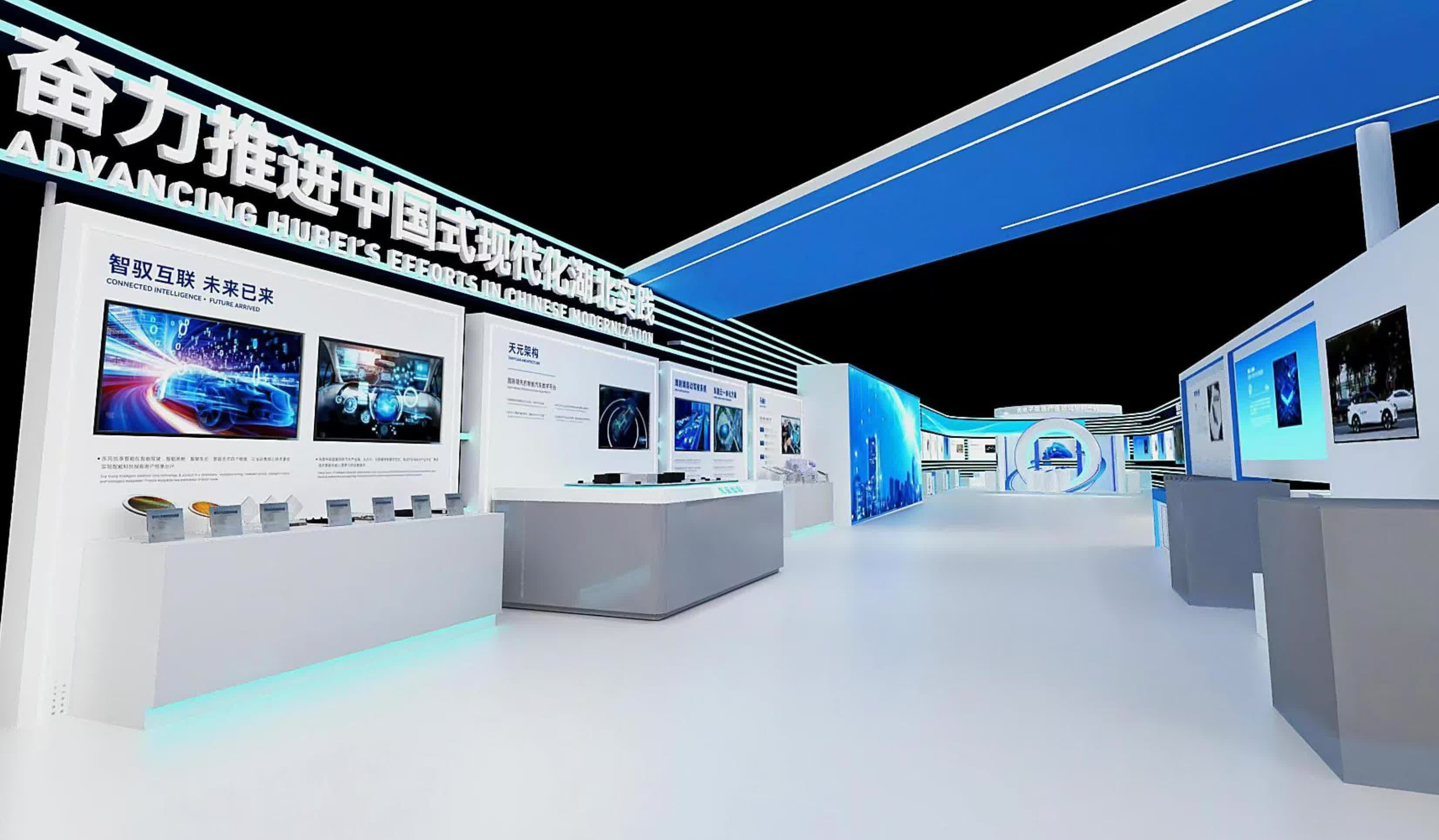其中人文展示廳通過「中華老字號、非物質文化遺産、國家級步行街、中國旅遊」四大業態板塊,展示江漢路步行街、湖北武當武術、楚式漆器等13個非遺項目和青瓷、茶葉等20個老字號産品,重點弘揚荊楚傳統文化;産業展示廳彙聚了湖北最具代表性的20餘家高新技術企業,通過實物、模型、視頻、圖文等形式,突出展示該省新能源與智能網聯汽車、光電子信息、高端裝備製造、生命健康、北斗五大優勢産業,人工智能、量子科技、智能家電、現代紡織服裝、新材料等九大新興特色産業,以及武漢新城和鄂州花湖機場等省重點發展的區域和點位。