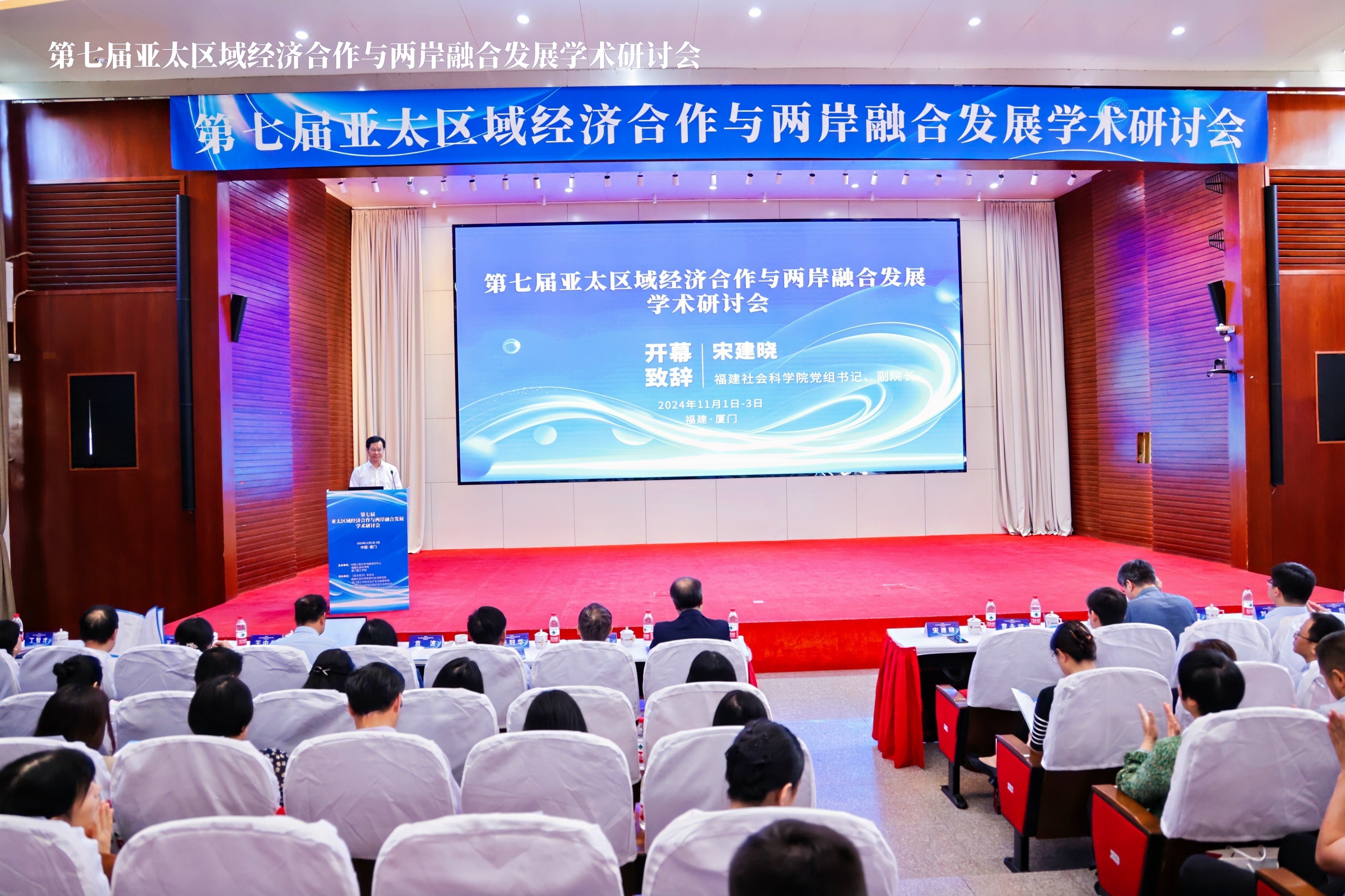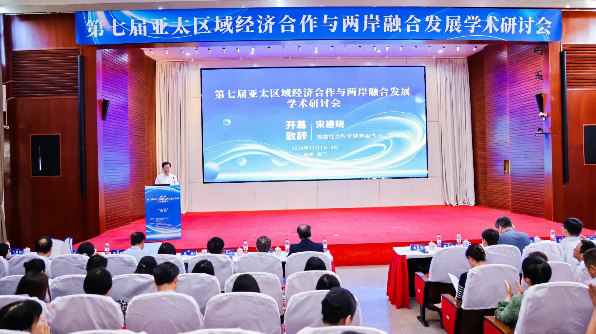 福建社會科學院黨組書記、副院長宋建曉在致辭中介紹了福建社科院近年來推進理論闡釋、學術研究、決策諮詢「三駕馬車」齊頭並進取得的豐碩成果,以及當前推進亞太區域合作和深化兩岸融合發展的新形勢、新機遇與新挑戰,表示福建社科院將繼續準確把握歷史方位,深刻認識「時」與「勢」,以回答中國之問、世界之問、時代之問為學術己任,為推動亞太區域經濟合作和兩岸融合發展貢獻更多智慧和力量。