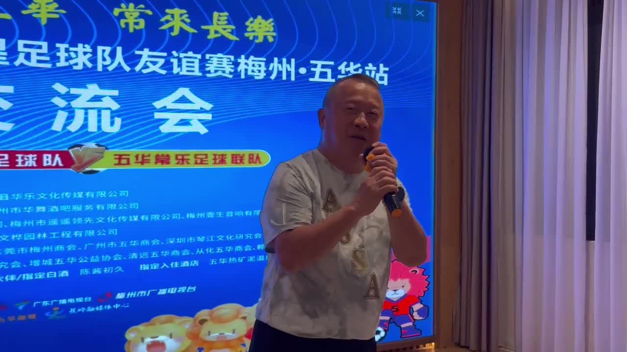 「提到五華,大家一定會想到李惠堂先生。如今這裏有濃厚的足球文化,有一支出色的足球隊。今次除了來這裏以球會友,還會參加以李惠堂先生為主題的電影《一生何球》的記者招待會,這是雙重盛事、喜事。」曾志偉說。