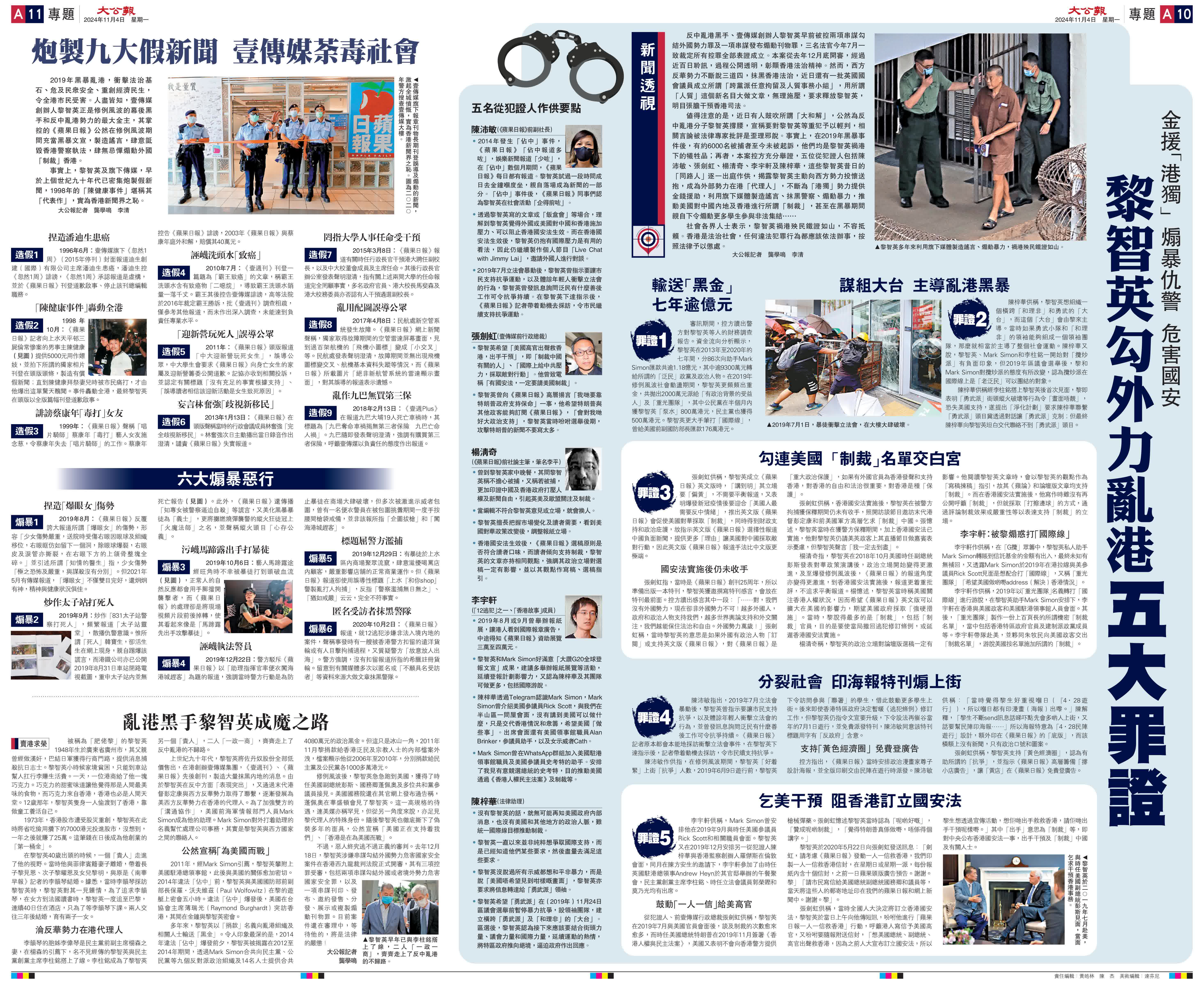 值得注意的是,近日有人鼓吹所謂「大和解」,公然為反中亂港分子黎智英撐腰,宣稱要對黎智英等重犯予以輕判,相關言論被法律專家批評是歪理邪說。事實上,在2019年黑暴事件後,有約6000名被捕者至今未被起訴,他們均是黎智英禍港下的犧牲品;再者,本案控方充分舉證,五位從犯證人包括陳沛敏、張劍虹、楊清奇、李宇軒及陳梓華,這些黎智英昔日的「同路人」逐一出庭作供,揭露黎智英主動向西方勢力投懷送抱,成為外部勢力在港「代理人」,不斷為「港獨」勢力提供金錢援助,利用旗下媒體製造謠言、抹黑警察、煽動暴力,推動美國對中國內地及香港進行所謂「制裁」,甚至在黑暴期間親自下令煽動更多學生參與非法集結……