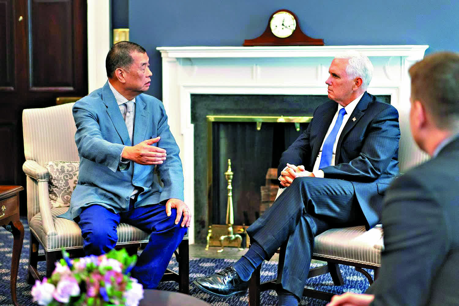 •黎智英希望「美國高官出聲救香港,出手干預」,即「制裁中國有關的人」、「國際上給中共壓力,採取敵對行動」。他曾致電稱「有國安法,一定要請美國制裁」。