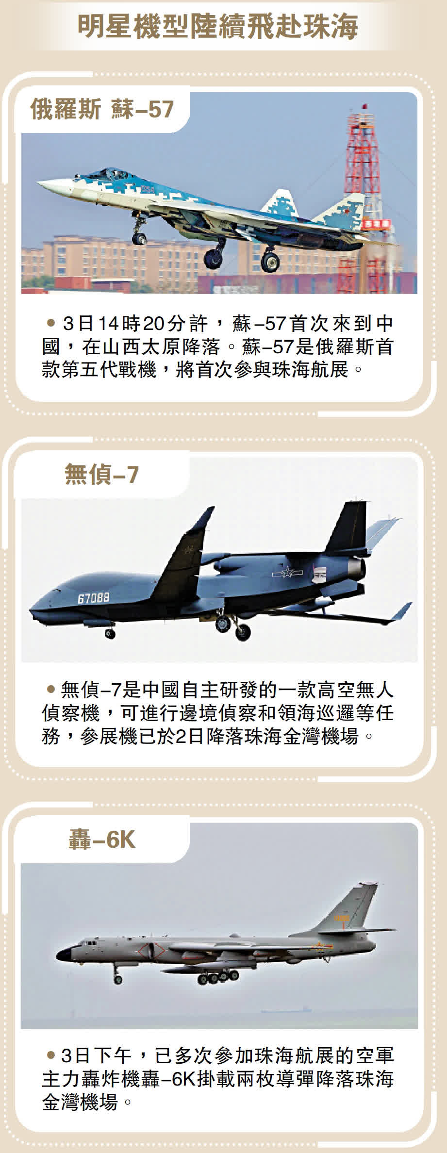中國空軍派出無偵-7和無偵-10兩型無人偵察機參加今年的珠海航展。兩型無人機自行飛臨珠海機場降落。而無偵-10更是首次展示了着陸後會拋出減速傘的模式,檢驗了穩定運行性能。