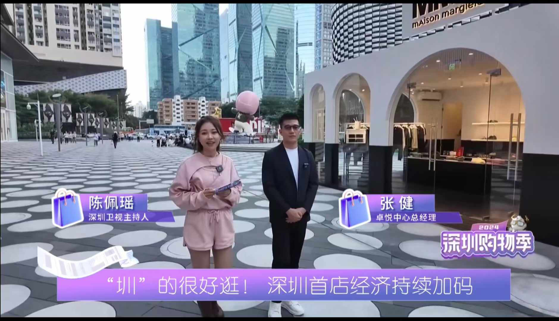 大公文匯全媒體報道,近日,為結合深圳市商務局主辦「深圳購物季」活動,深圳衛視推出「得閒北上『圳』係好逛」全媒體直播節目,節目由深圳衛視主持人劉煜、陳佩瑤聯同卓悅中心One Avenue總經理張健以及香港青年創作歌手丁政凱於深圳市福田區卓悅中心One Avenue,由陳佩瑤與張健、劉煜與丁政凱分成兩組路線進行拍攝,向深港兩地市民推介優質商圈,並於節目中加入抽獎環節,與線上觀眾進行互動。是次節目有吸引超過516萬線上觀眾收看。