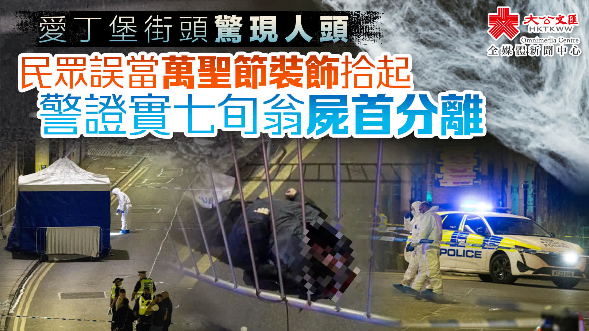 大公文匯全媒體報道,英國的愛丁堡(Edinburgh)發生一宗駭人交通意外。據外媒報道,當地時間11月2日晚上,有民眾在愛丁堡街頭旁發現一個人頭,因萬聖節剛剛過去,民眾誤以為是萬聖節道具隨手拾起,大驚發現原來是真人頭顱。當地警方其後證實現場曾發生交通意外,一名74歲老翁在涉事地點慘被車撞,或輾至甩頭致屍首分離,死狀恐怖,惟目前仍未有案件詳情清晰交代。當地有傳媒形容事件為「愛丁堡噩夢」。