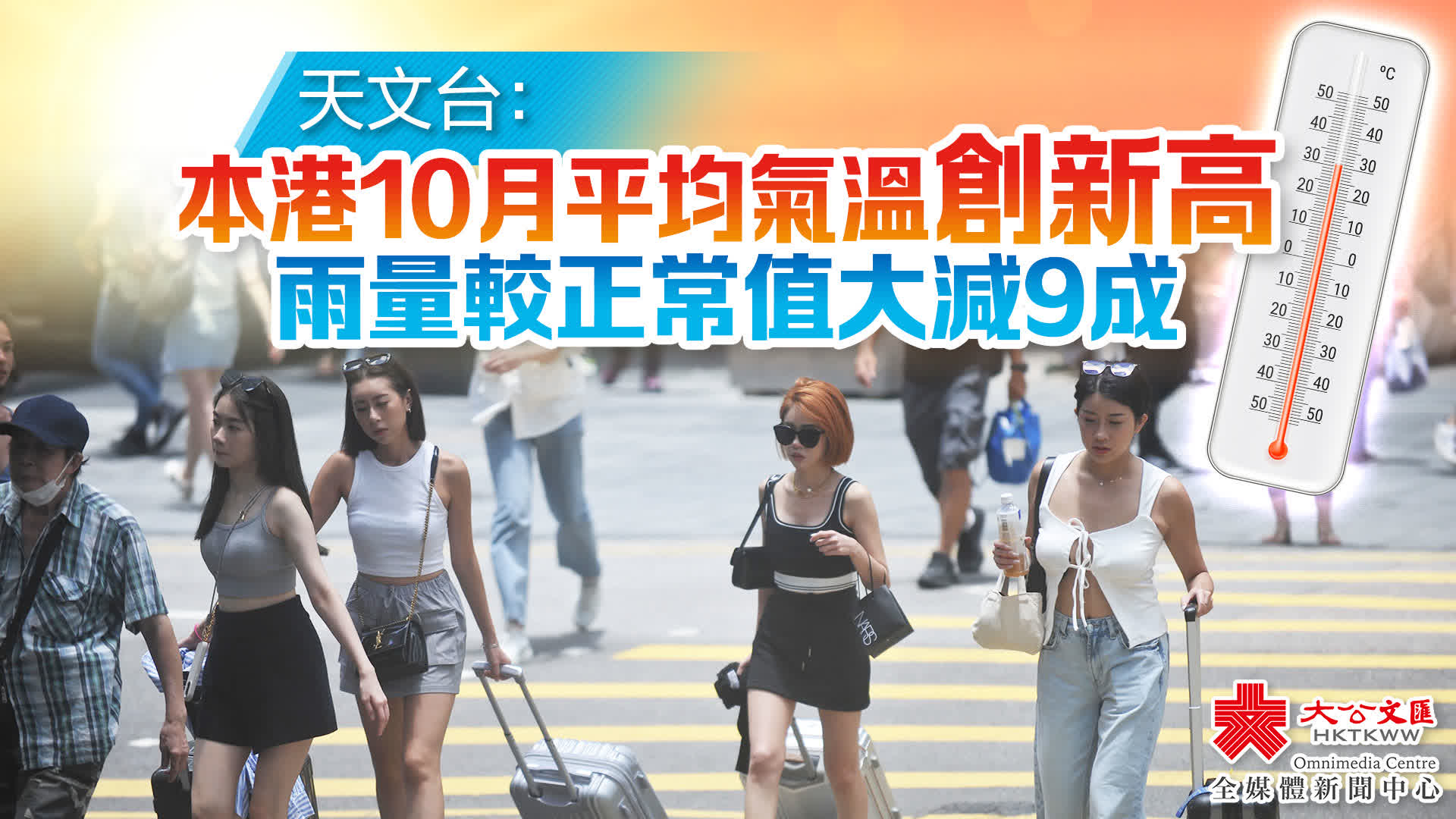 大公文匯全媒體報道,由於華南的東北季候風較正常弱,本港的10月遠較正常溫暖。香港天文台今日(4日)表示,本港上月錄得最高氣溫30.3度、平均氣溫27.3度、平均最低氣溫25.4度,分別較其正常值高2.2度、1.6度及1.5度,皆為有記錄以來10月最高。同時,上月共有3天出現酷熱天氣,亦是歷來10月的其中一個最多。