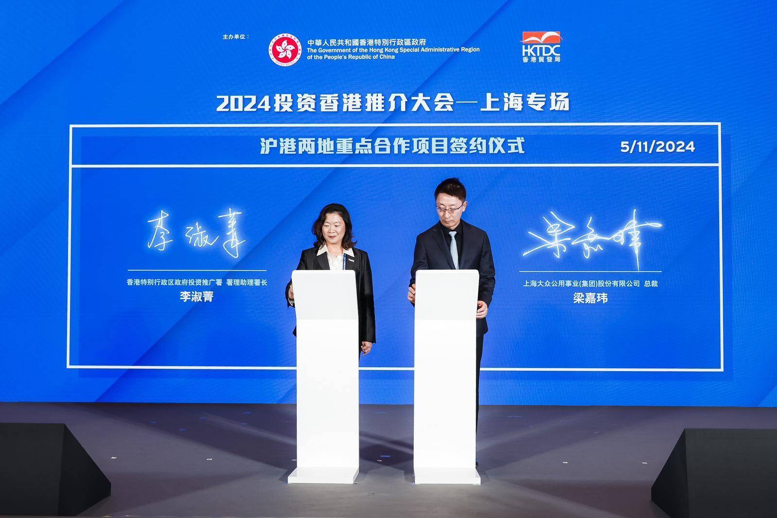 作為專責推廣香港營商優勢、服務來自中國內地和全球企業到港開設業務的香港特區政府投資推廣署參與「滬港兩地重點項目簽約儀式」,香港投資推廣署署理助理署長李淑菁代表香港投資推廣署與五家上海企業代表分別簽訂合作備忘錄。茲表示,香港投資推廣署將提供有關香港本地的營商環境和政府政策信息。香港投資推廣署亦將為企業就其在港投資和營運所需相關公司註冊和牌照的申請程序提供支持,並提供有關辦公室選址、人才、融資和政府資助計劃等落地配套信息和支援等。五家重點企業均來自香港投資推廣署服務客戶。