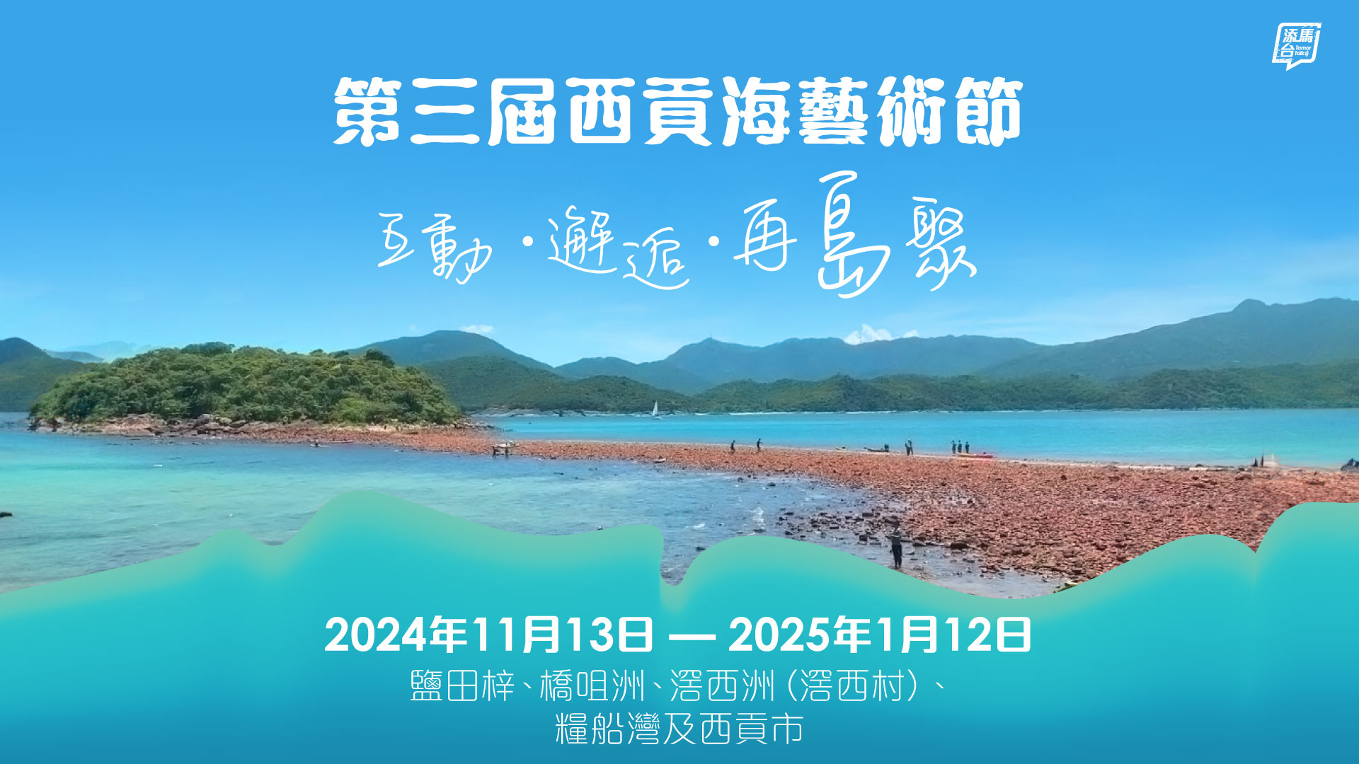 一年一度的西貢海藝術節又來了!為期3年的「西貢海藝術節」踏入最後一年,以互動和邂逅為主題,「再島聚」為策展方向,於11月13日至2025年1月12日期間,在鹽田梓、橋咀洲、滘西洲、糧船灣及西貢市,提供融合藝術、文化、古蹟及綠色元素於一身的沉浸式體驗。看圖了解詳情。