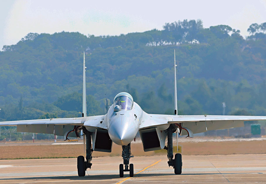(香港文匯報記者 方俊明 珠海報道)海軍重型艦載戰鬥機「殲-15T」6日飛抵珠海,將在第十五屆中國航展亮相。據了解,該款戰鬥機是航母編隊的核心武器裝備,是中國海軍航空兵的重要力量,這也是人民海軍戰機首次出現在中國航展。同日,空軍航空大學「紅鷹」飛行表演隊9架噴氣式「教-8」教練機亦分三批次以編隊形式抵達珠海。針對本屆航展飛行表演,「紅鷹」飛行表演隊設計了20多個特技飛行動作,將為觀眾帶來航空視覺盛宴。