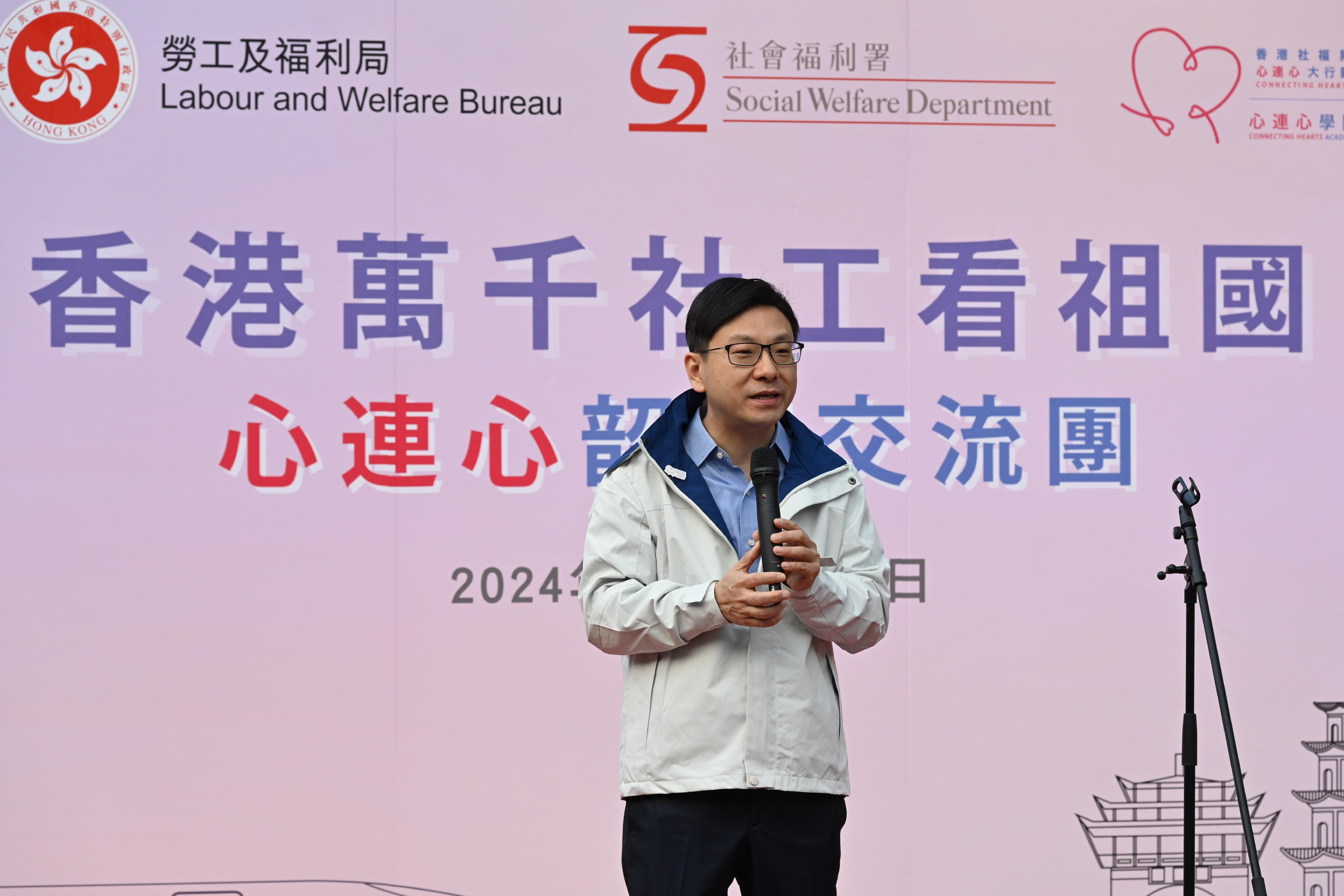 香港社福界心連心大行動(心連心)今日(十一月七日)舉行香港萬千社工看祖國——「心連心」韶關高鐵交流團啓動禮,勞工及福利局局長孫玉菡為啓動禮主禮,勞工及福利局副局長何啟明及社會福利署署長李佩詩則參與部分交流團行程。以下是孫玉菡在啓動禮上的致辭全文: