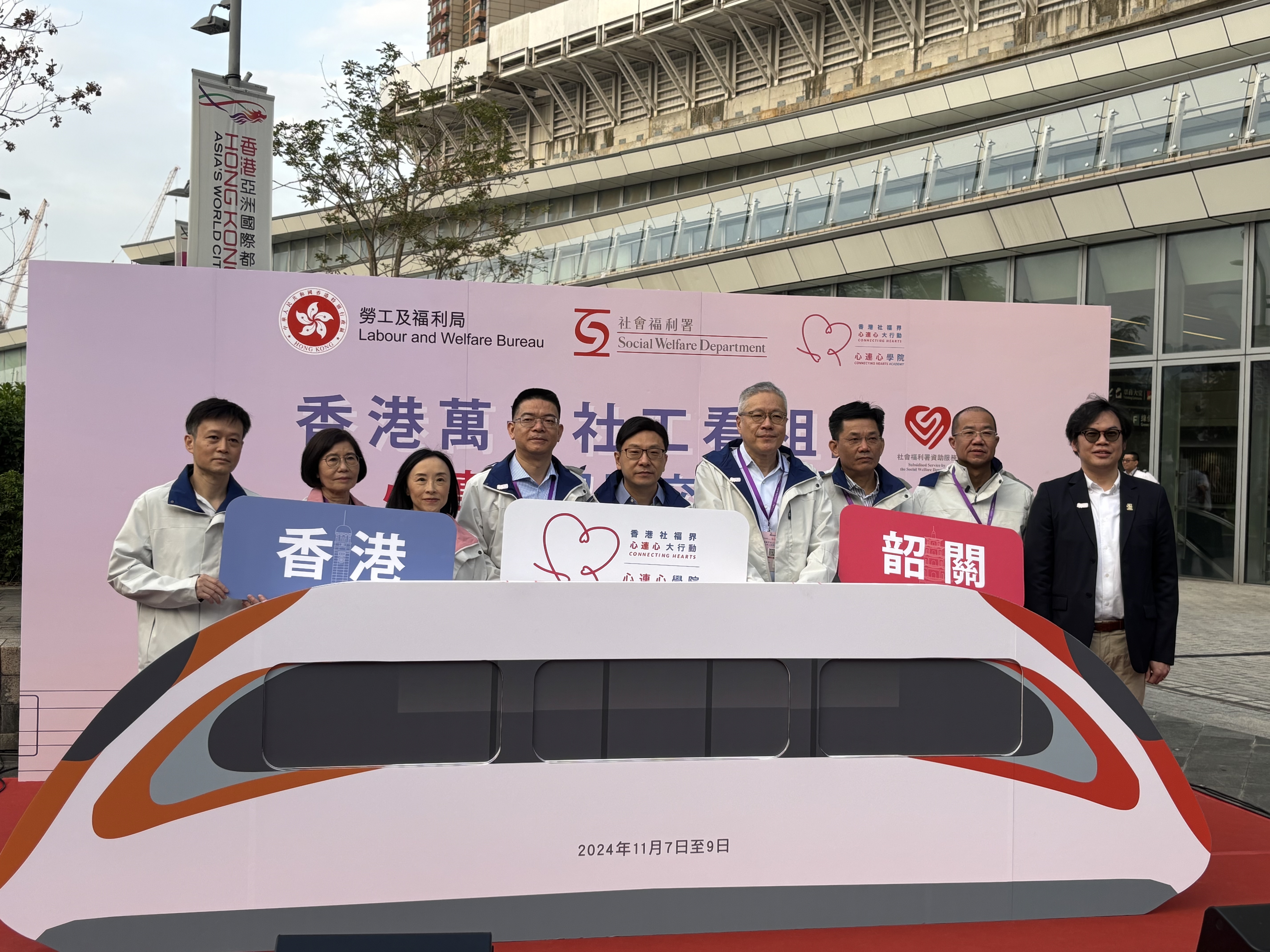 (大公文匯全媒體記者 鄭洢林)首團「香港萬千社工看祖國」交流團早前3日2夜出訪潮州,各方反應十分正面,香港社福界心連心大行動(簡稱「心連心」)及心連心學院再組織「香港萬千社工看祖國-『心連心』韶關交流團」,交流團於11月7日至9日舉行,並首次安排高鐵專列前往韶關,有來自超過80間營辦津助福利服務的非政府機構約400名同工參加,其中絕大部分為註冊社工。交流團今日(7日)出發前在西九龍高鐵站舉行啟動禮。