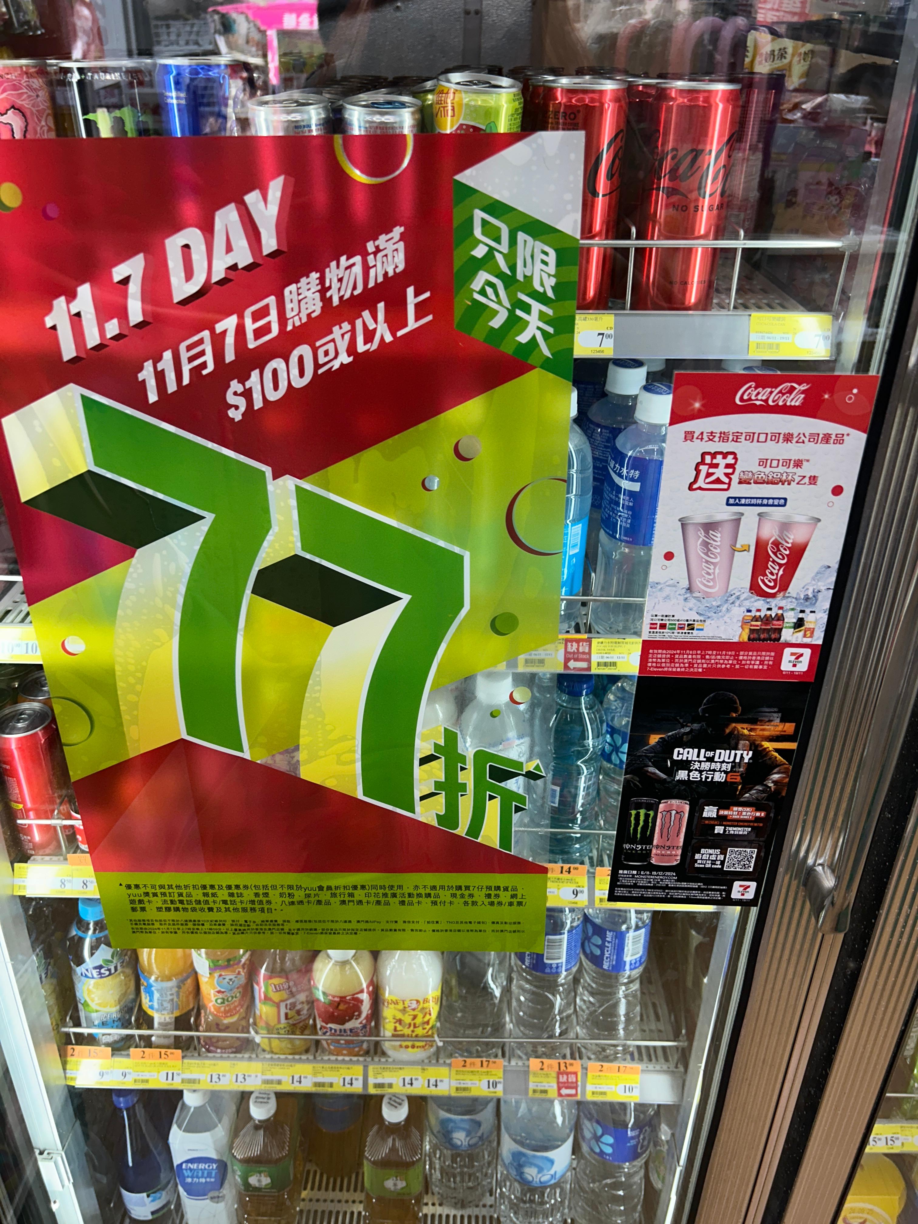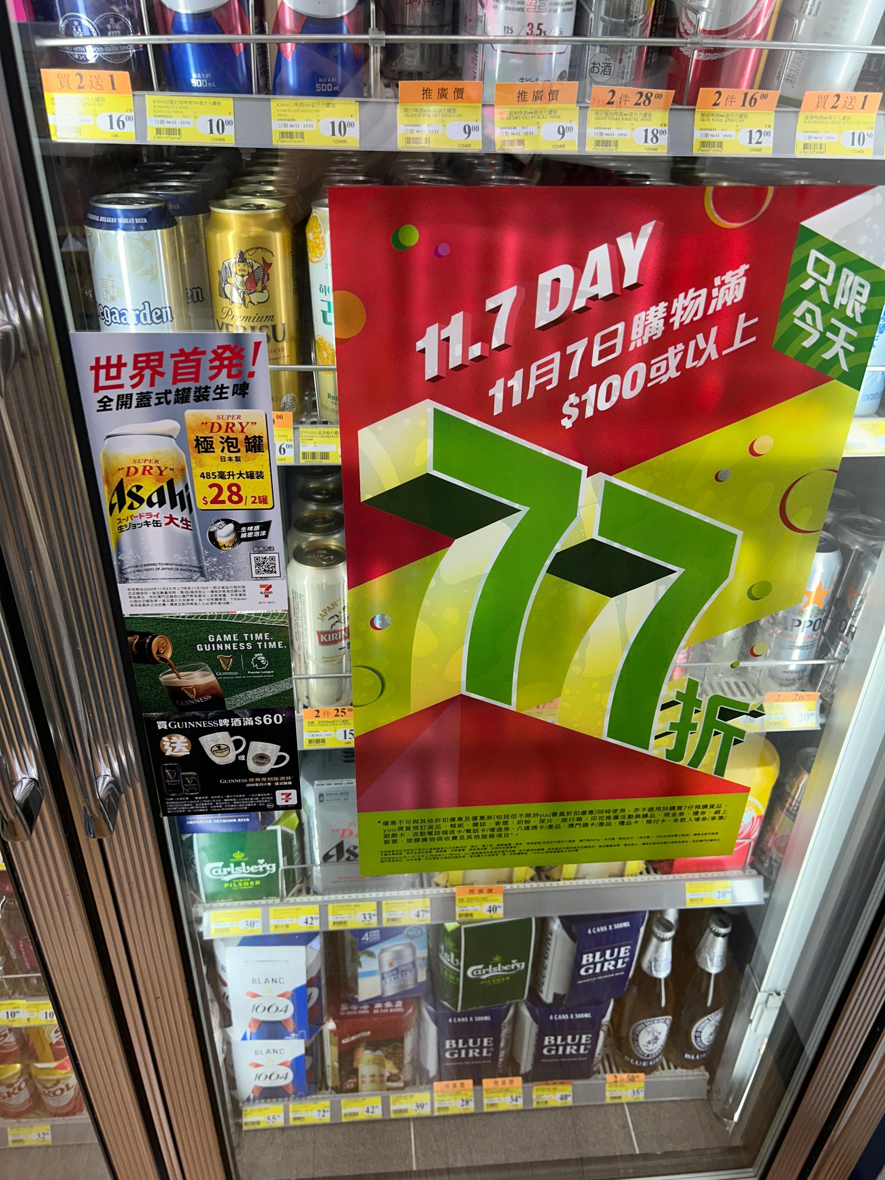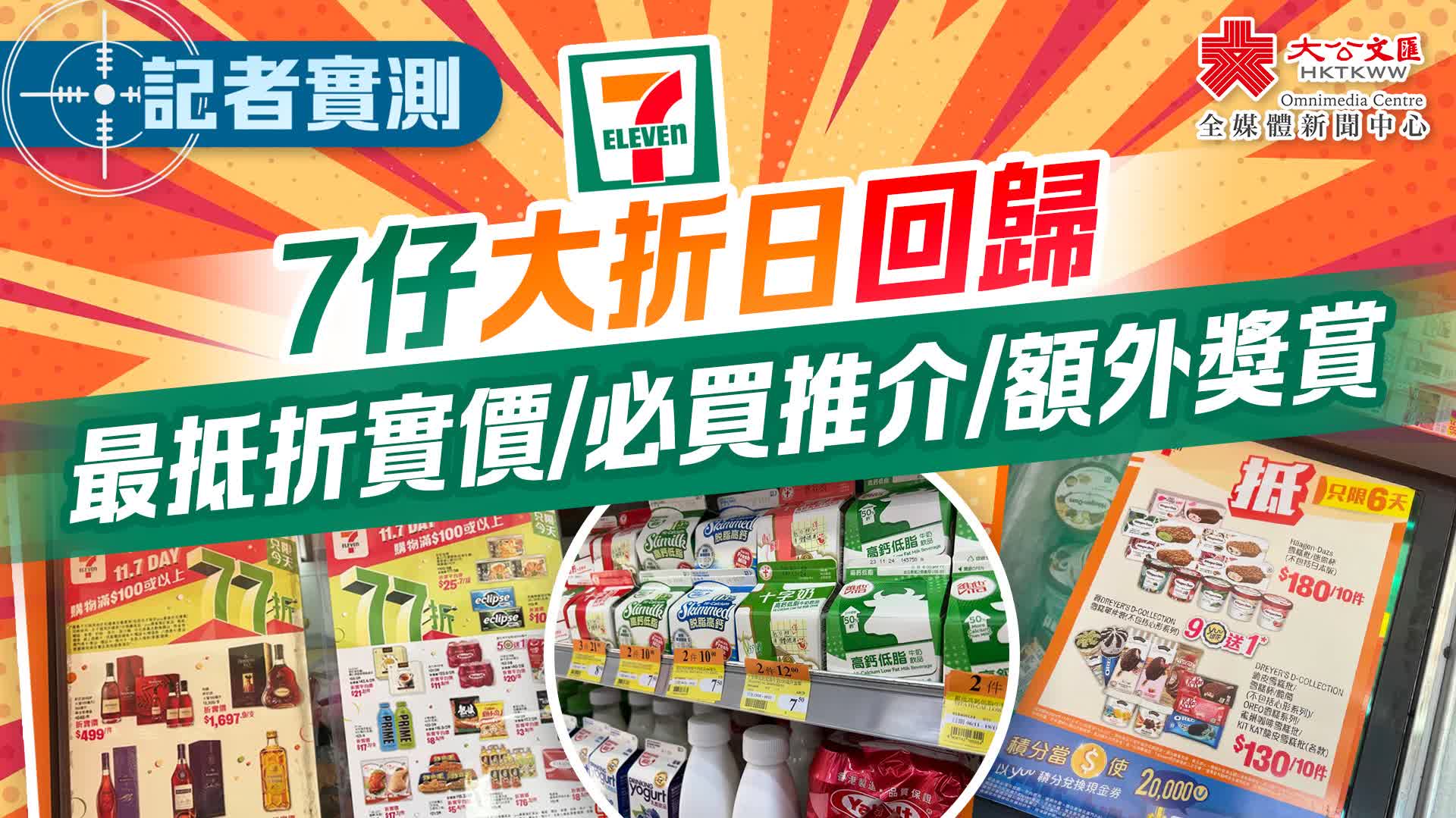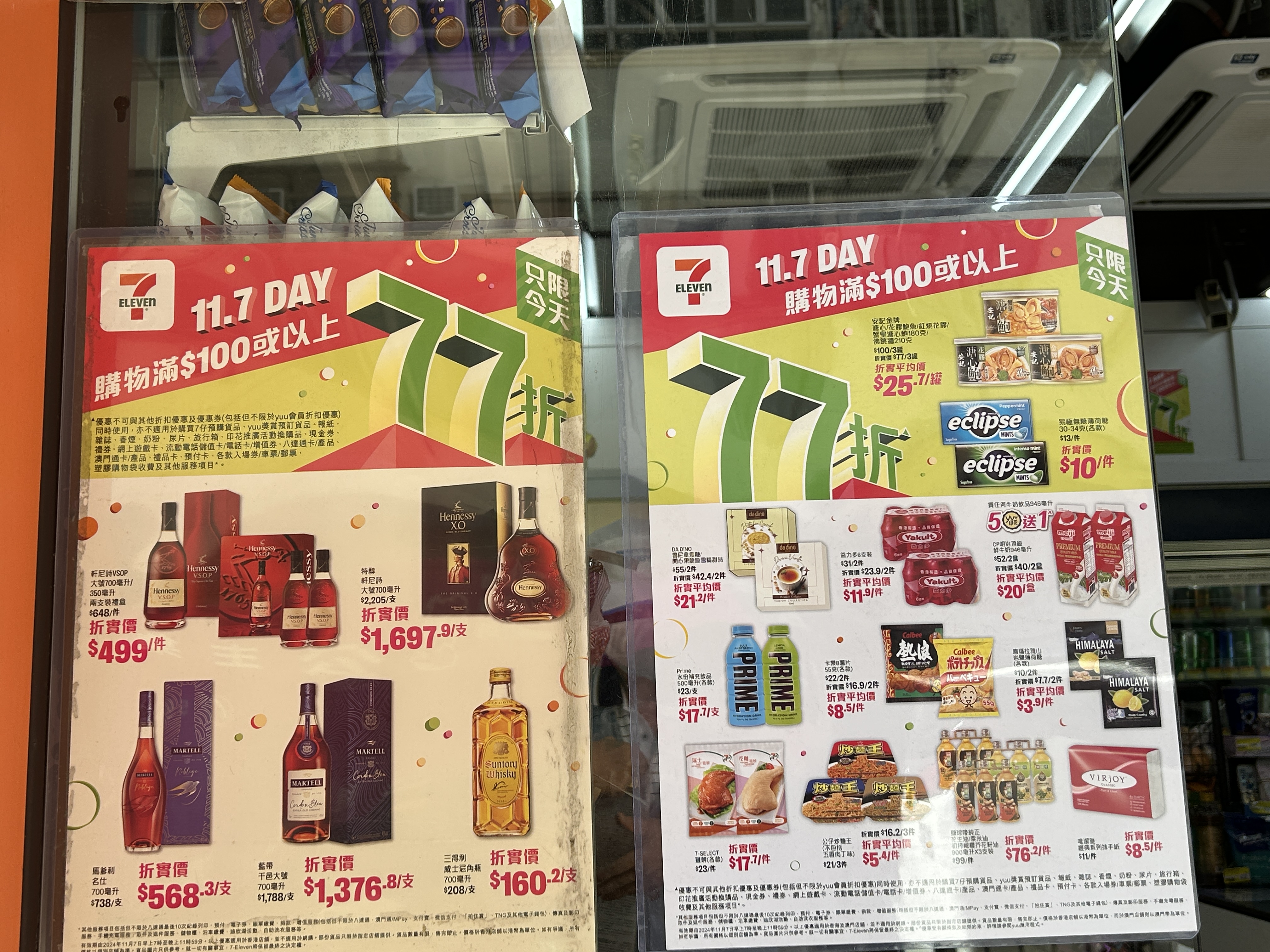大公文匯全媒體報道,便利店7-Eleven「大折日」今日(11月7日)回歸!由早上7時正開始,當日凡購物滿100元或以上,即可享受全場77折優惠,大公文匯全媒體記者今日中午前往附近7-Eleven門店實測優惠力度。