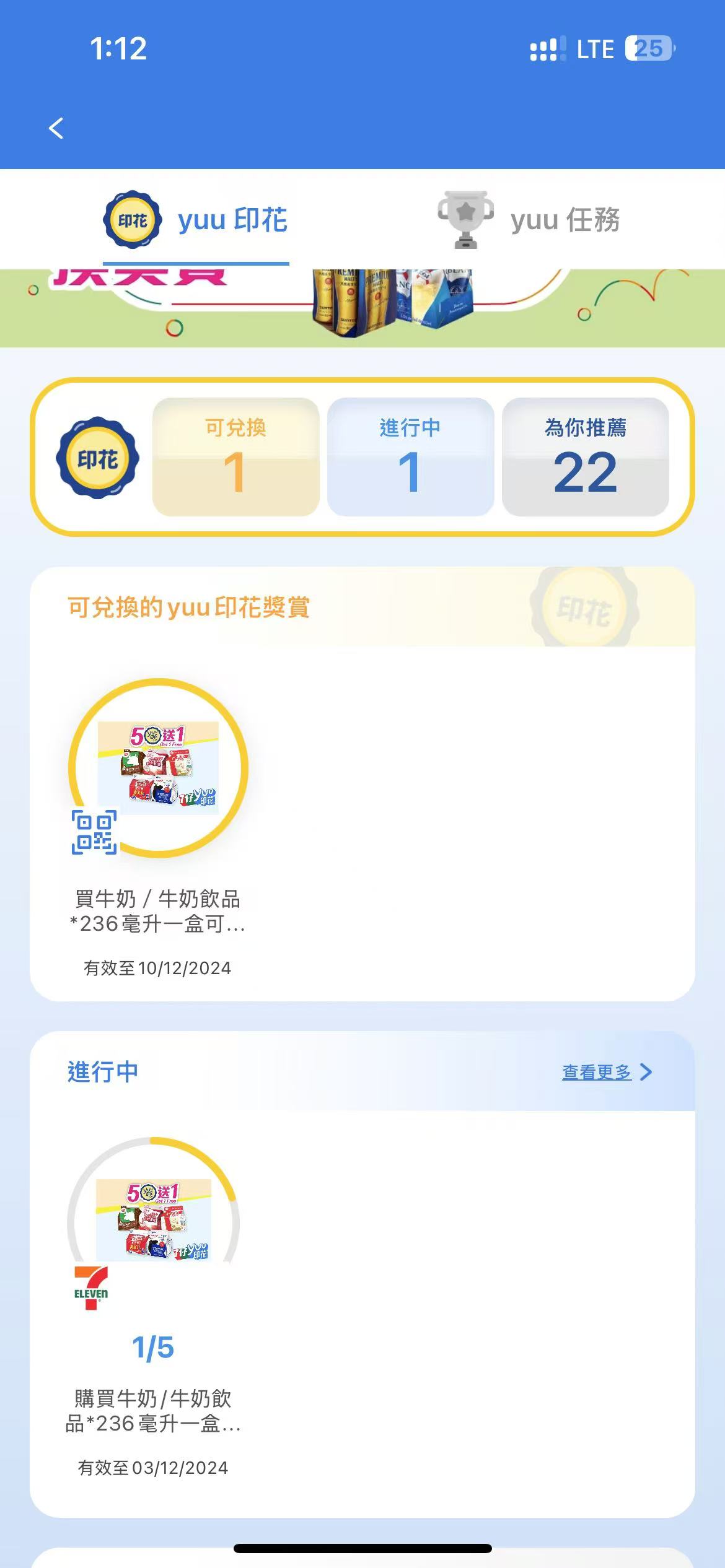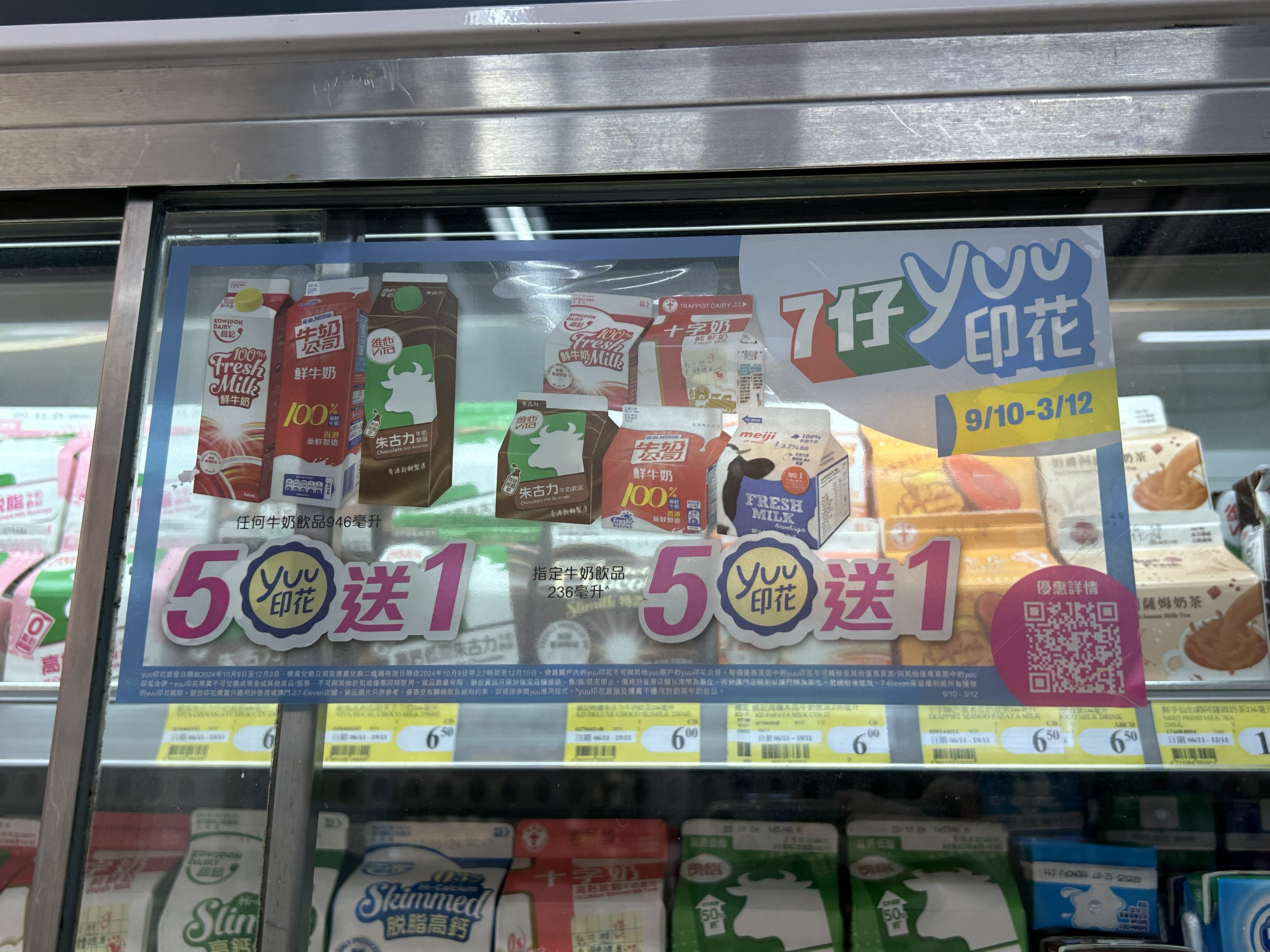 yuu會員凡購買任何牛奶飲品946毫升,可享yuu印花獎賞買5送1。
