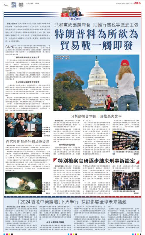 (來源:香港文匯報A19:國際 2024/11/08)