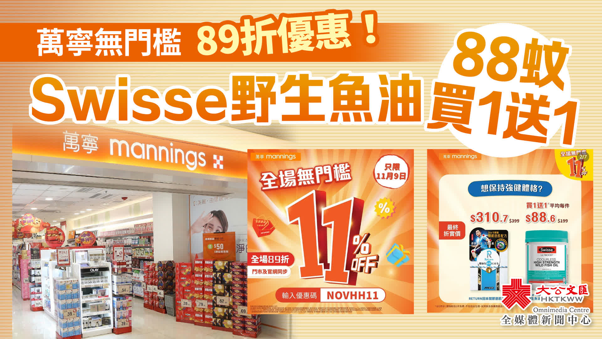 大公文匯全媒體報道,萬寧今日(9日)推出11月限定優惠攻略,全場貨品無門檻89折優惠!11月9日掃貨之日一起來睇睇!