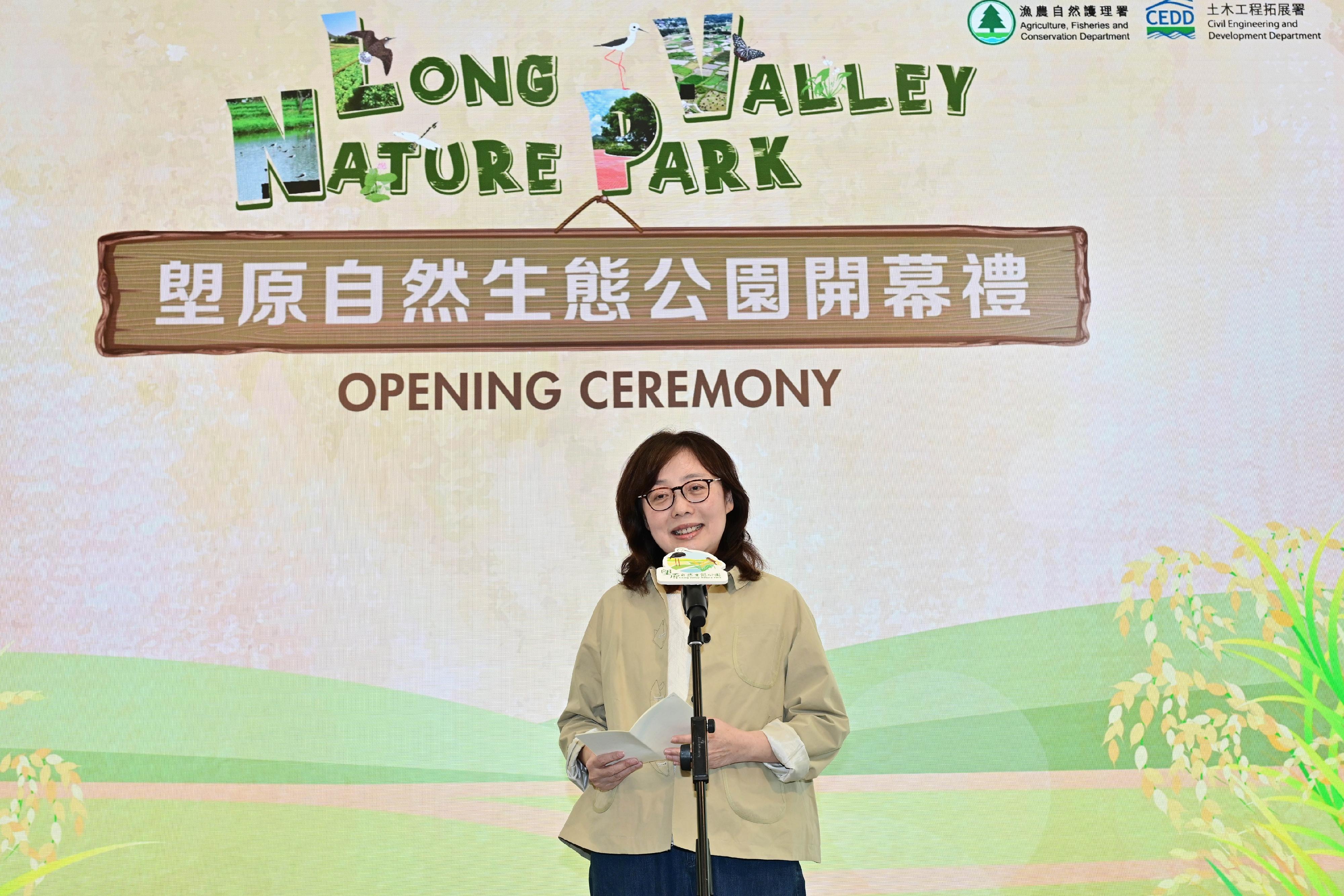 甯漢豪致辭時表示,北部都會區既有都市化發展,也有重要的人文文化和生態環境。塱原自然生態公園具高生態價值,有效提升濕地生境,亦有適合的基建配套和訪客設施,引證政府致力把「城市與鄉郊融合、發展與保育並存」貫徹到北部都會區的發展中。