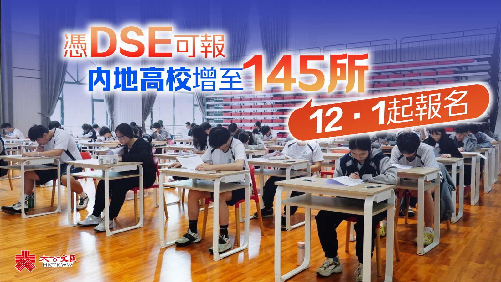 大公文匯全媒體報道,國家教育部今日(11日)公布,參與2025/26學年內地高校招收香港中學文憑考試學生計劃(文憑試收生計劃)的內地高等院校數目增加至145所。院校分布內地21個省/直轄市及1個自治區,並接受2025年香港中學文憑考試(文憑試)考生報名。