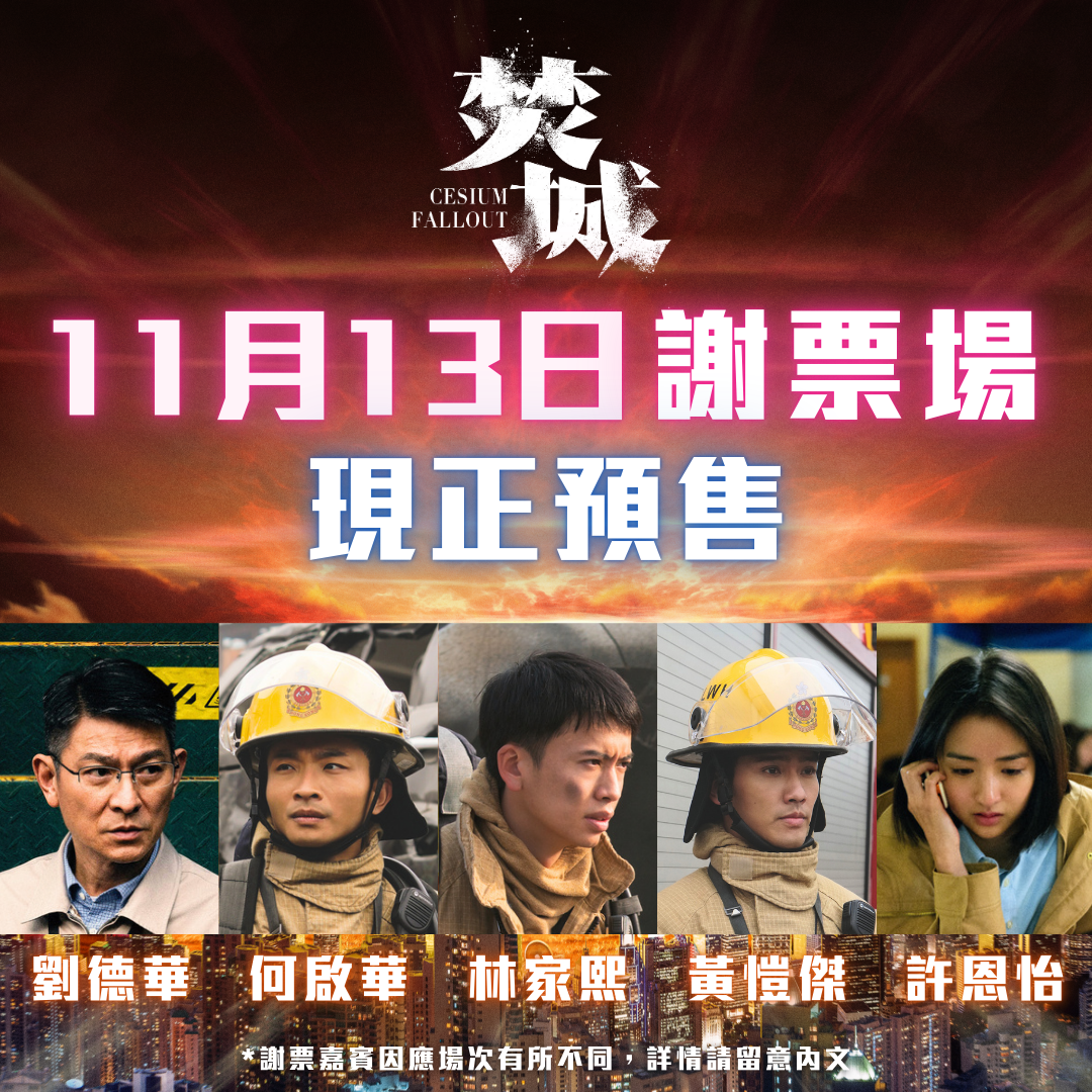 華仔從觀眾席跑到台前與一班戲中的隊友互相擁抱打招呼,Michael(王敏德)即戲中角色上身跟華仔說:「are you losing your mind?」反應敏捷的華仔也以戲中對白回應他:「你玩完啦!」兩人的互動,令剛剛看完戲的觀眾也拍掌和應。有備而來的華仔早已穿上寫上「焚城」的藍T恤,跟團隊穿上同一制服一起謝票,一時間士氣高漲起來。