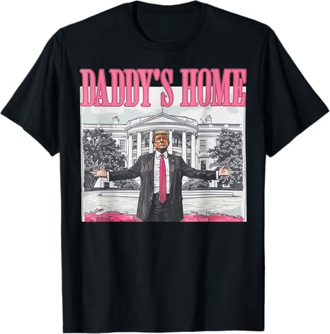 再例如這款以白宮為背景的T恤,特朗普在白宮前張開手臂,上書「Daddy's Home(爸爸的家)」,意味着特朗普重回白宮。至於為什麼是Daddy……或許就該問問設計者的想法了。