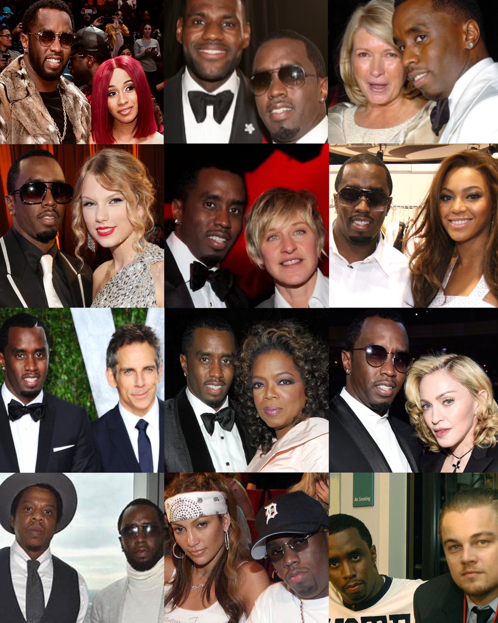 此外,網友們還整理出了一張圖,上面包括了一些和Diddy合影過的明星,看起來私交甚好。這些明星個個大牌,包括了饒舌歌手Cardi B、籃球運動員LeBron James、主持人和喜劇演員Ellen DeGeneres、超級巨星Beyoncé、蟻俠Paul Rudd等。網友們相信這些明星都在Diddy的賓客名單上,儘管這些明星們相當一部分只是和他合影了而已。