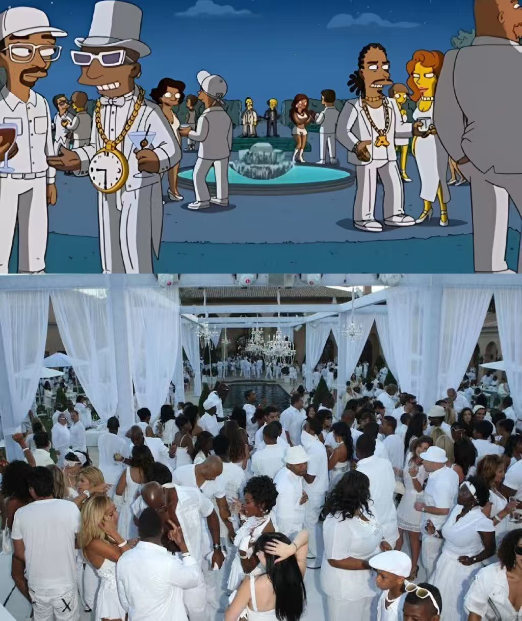 在此次事件中,美國動畫《阿森一族》(The Simpsons)被認為暗示了Diddy的醜聞。很多網友發現,《阿森一族》曾經製作過關於「白色派對」的內容,更是預言了Diddy被警方逮捕的事情。民眾相信,《阿森一族》的製作團隊或許很早就知道Diddy的秘密。