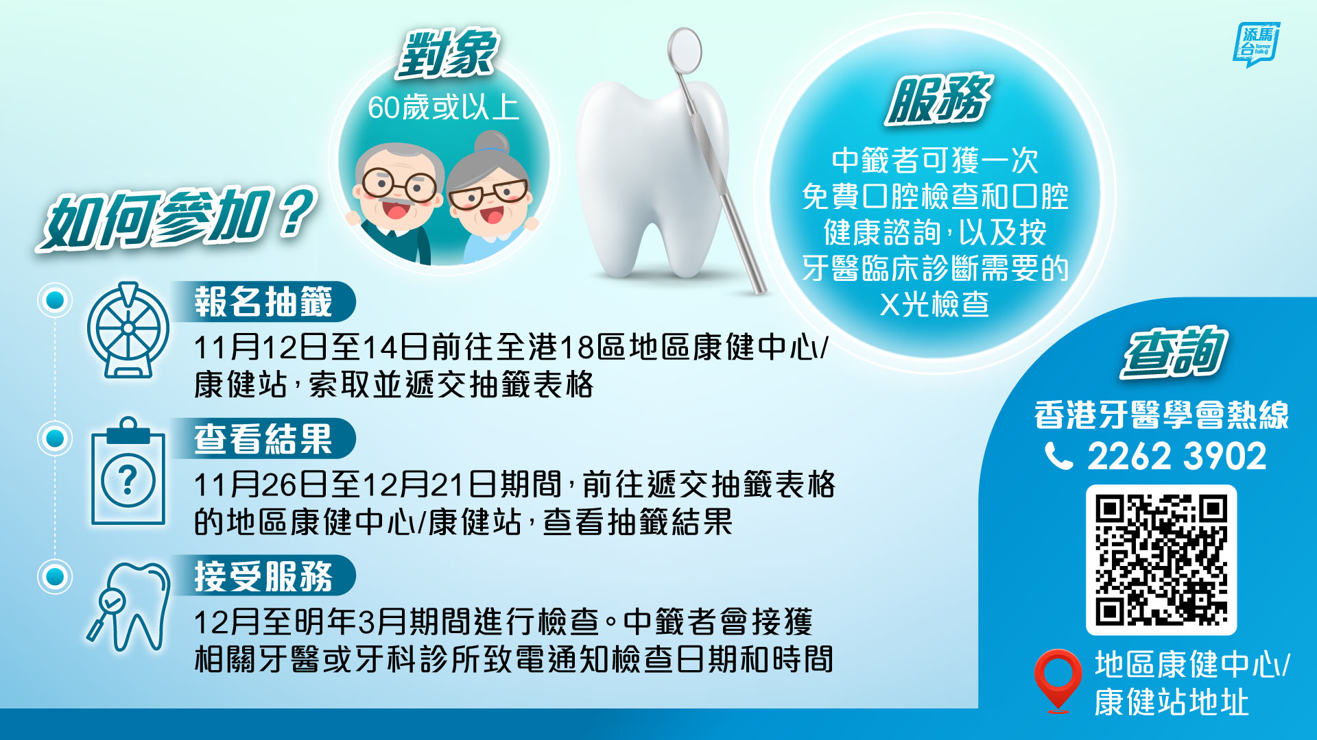 關鍵詞:香港牙醫學會免費口腔檢查添馬台大文號