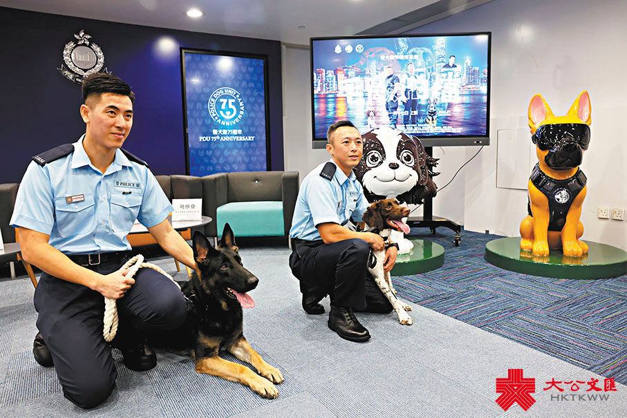 (香港文匯報記者 李芷珊)警隊在維持治安及打擊罪案工作中,每一隻警犬都是最佳拍檔,牠們由日常巡邏、追捕疑犯,到罪案搜證及大型慶典的安檢,甚至最危險的搜查爆炸品,在守護市民安全的行動中功不可沒。今年是警犬隊成立75周年,警隊將推出一套以警犬為主角的微電影《毛敵拍檔》,其中兩隻巡邏犬和搜爆犬Bailey和「恭喜」,日前現身警方的講解會,展示巡邏犬和搜爆犬的職能,讓公眾更深入了解警犬的成長過程和滅罪戰績,以及領犬員與警犬成為拍檔之前前所經歷的困難。