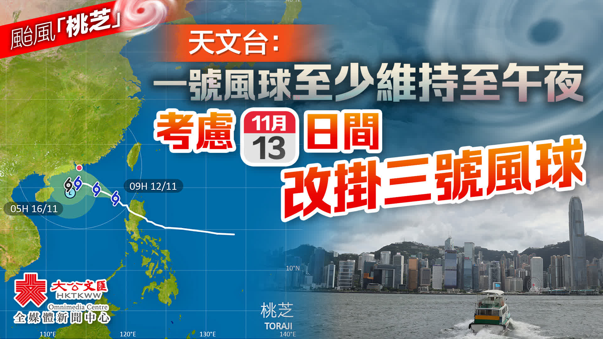 天文台表示,隨着「桃芝」靠近華南沿岸,在其與東北季候風的共同影響下,該區的風力會逐漸增強,會考慮在明日(13日)日間改發三號強風信號。