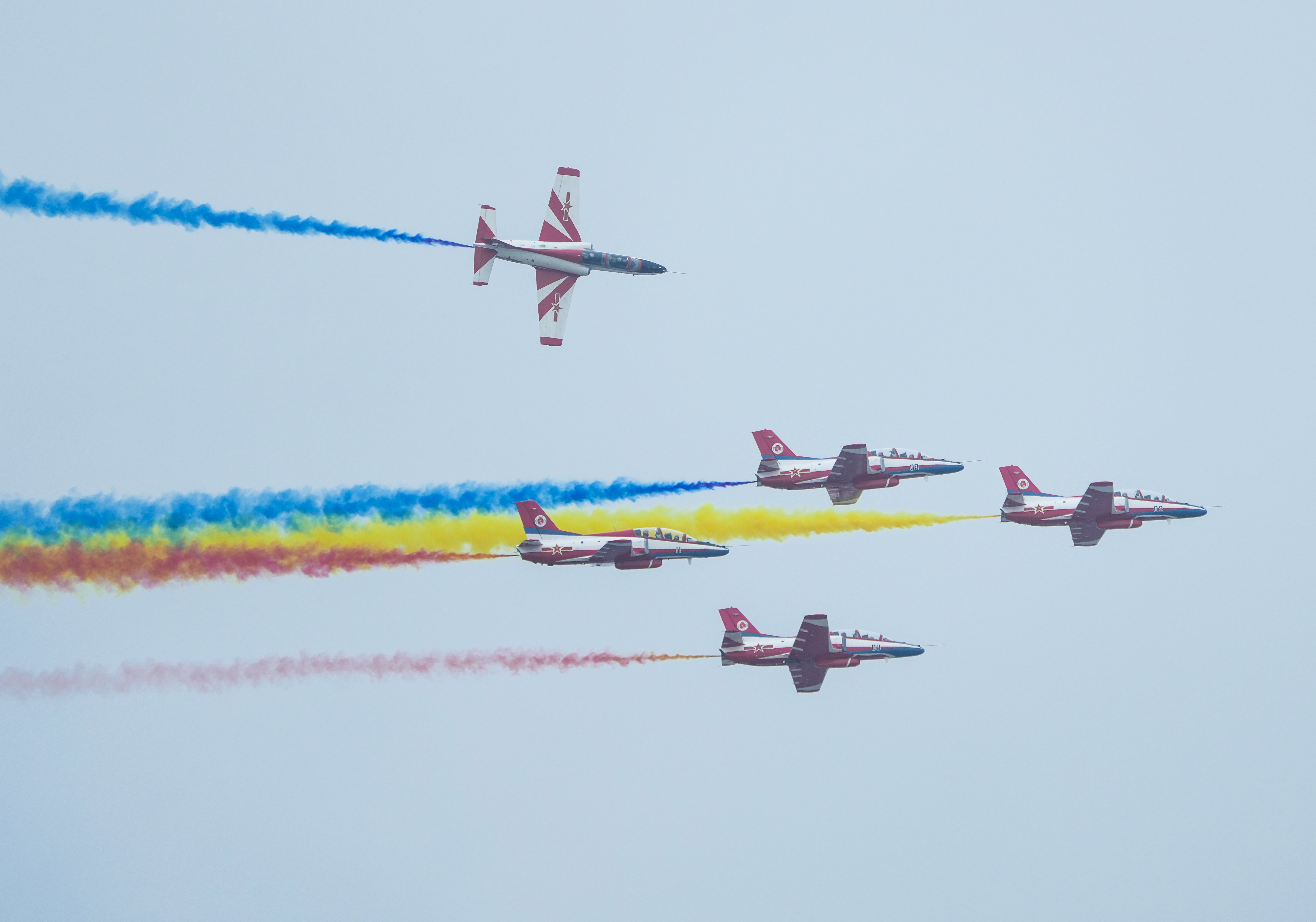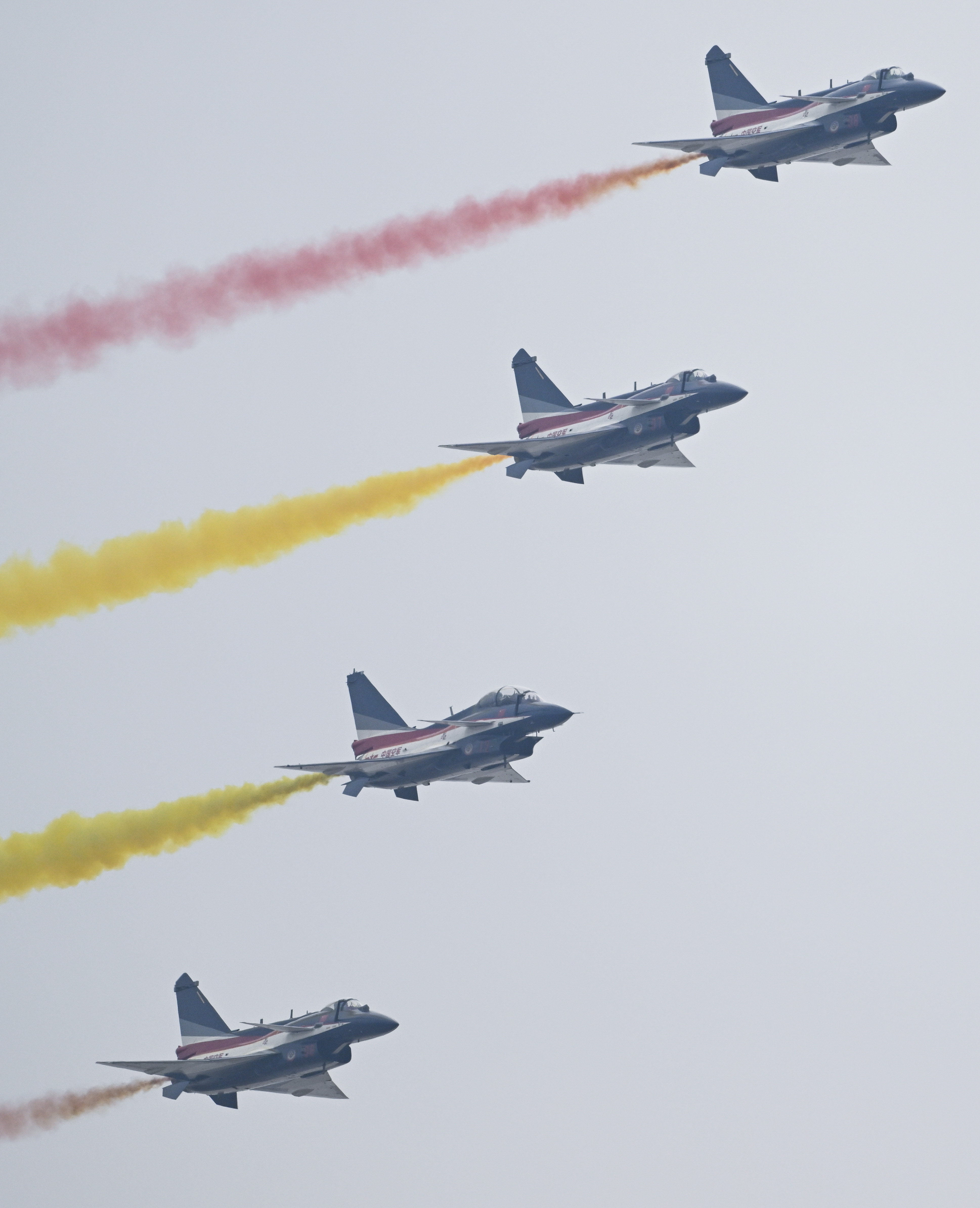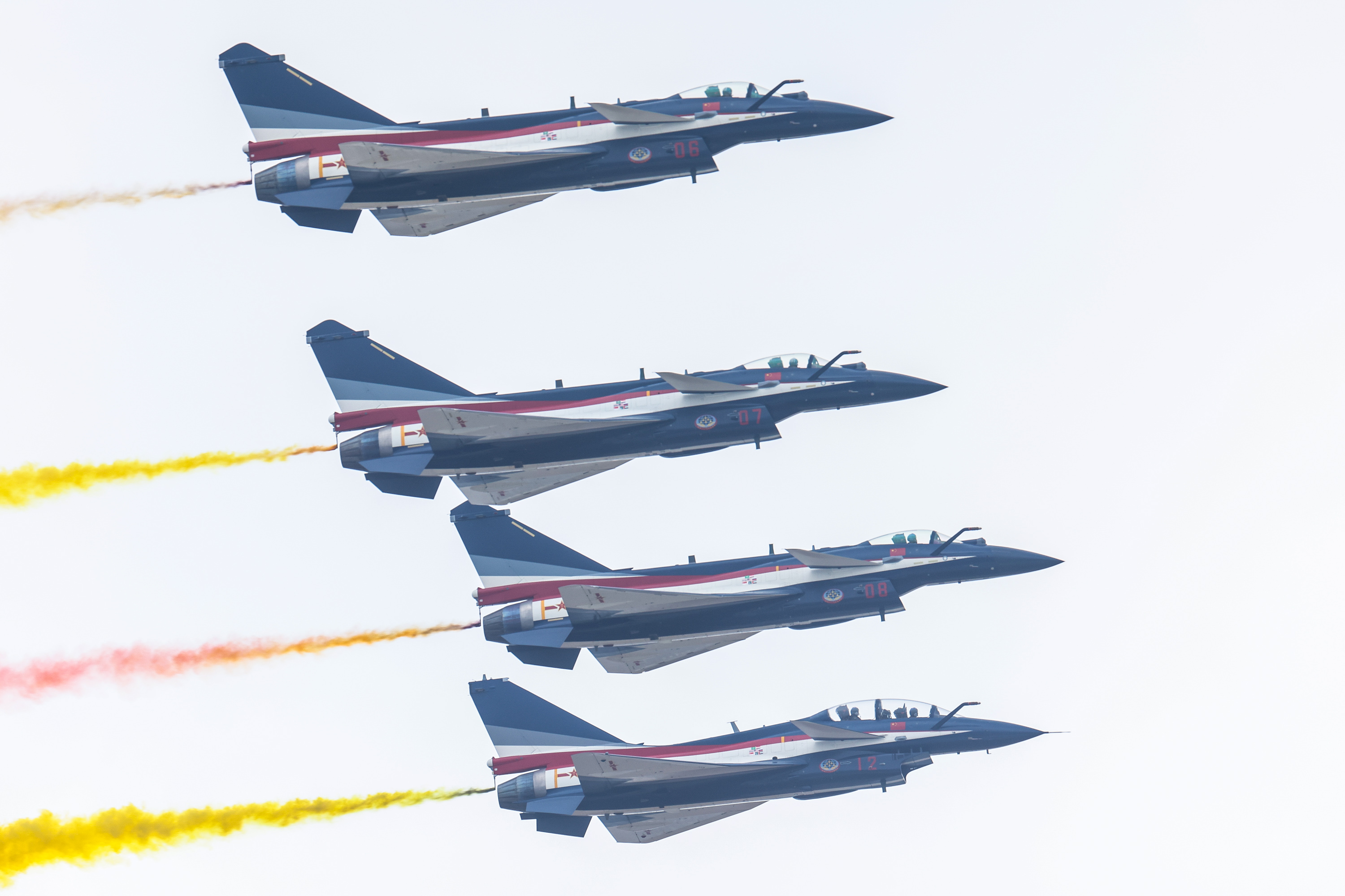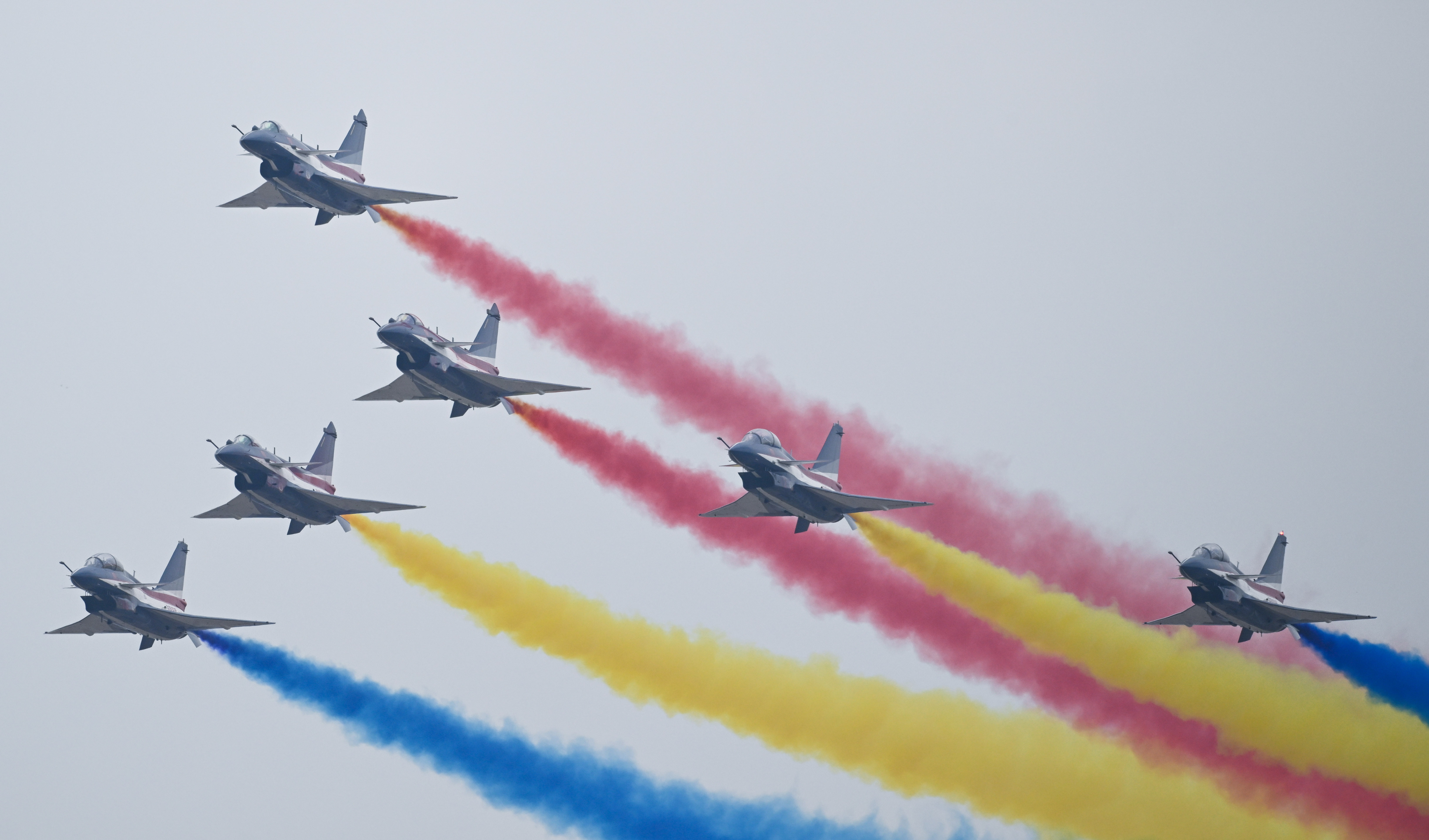 大公文匯全媒體報道,第十五屆中國國際航空航天博覽會於11月12日在廣東珠海開幕。11月11日,空軍八一飛行表演隊和空軍航空大學「紅鷹」飛行表演隊展翅珠海,以獨特的方式慶祝中國人民解放軍空軍成立75周年。