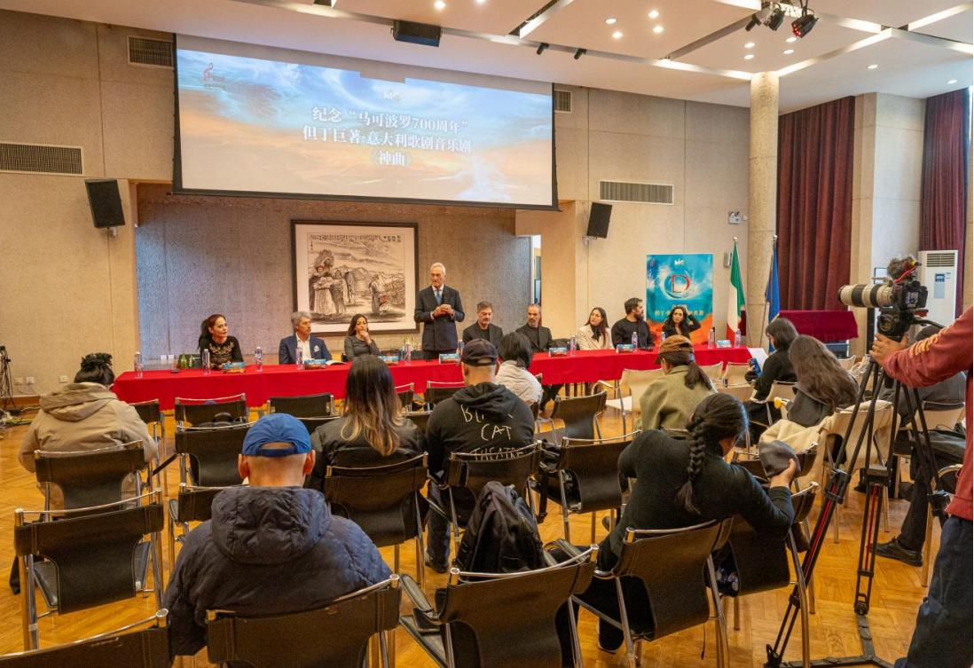 活動現場,加布里埃爾·格拉維納、雷奧納多·格拉維納先後致辭,暢談中意文化交流的歷史和未來,講述音樂劇《神曲》首次來華對兩國文化交流的特殊意義。現場播放了音樂劇《神曲》宣傳片,幾位主角現場表演了部分音樂劇經典唱段,引來現場觀眾熱烈掌聲。《神曲》導演、演員和作家安德烈亞·奧爾蒂斯,執行製作人、舞台設計師拉拉·卡里西米以及四名主演分別發言,分享創作理念和角色體驗。
