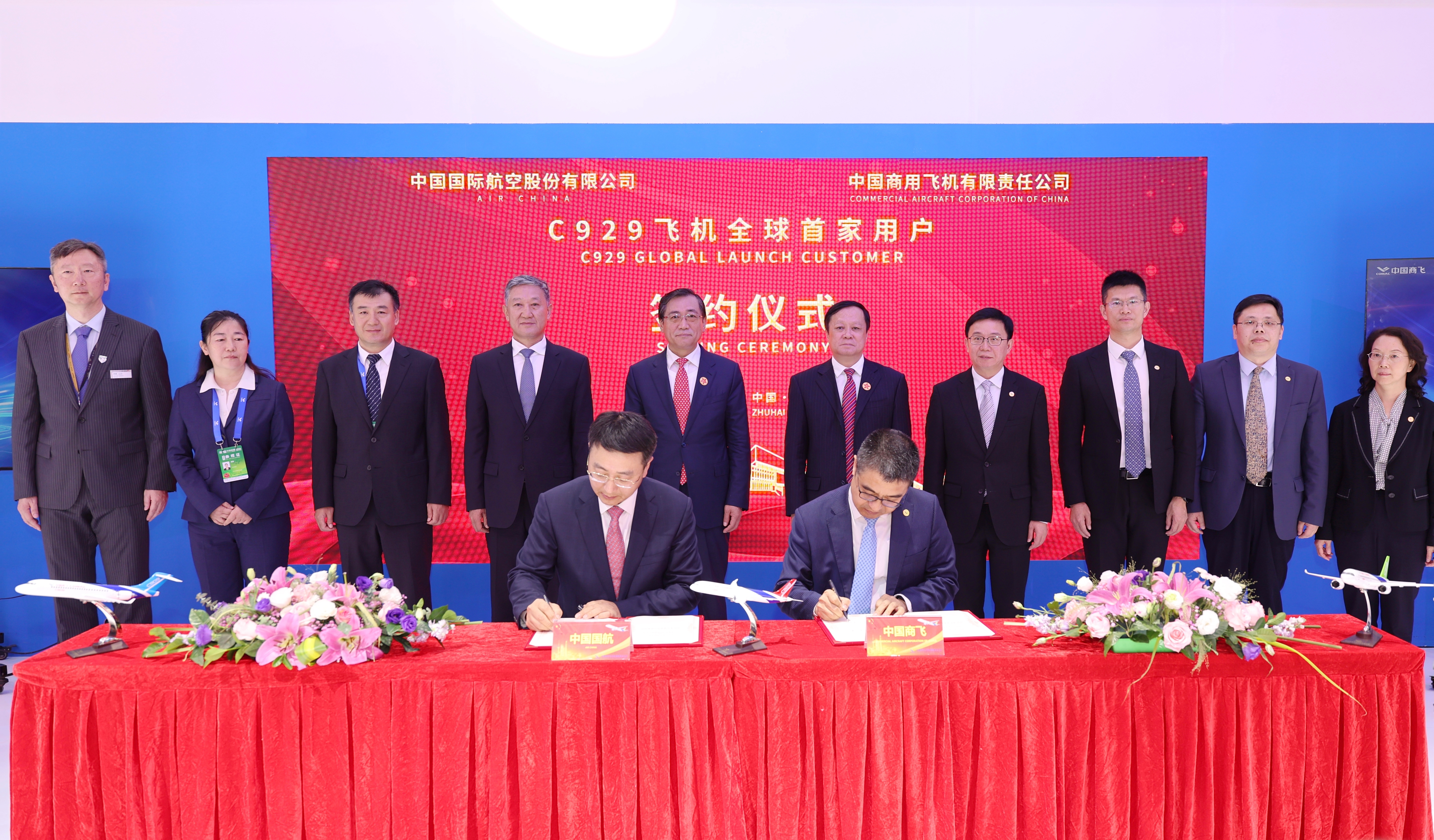 (大公文匯網記者王珏) 11月12日,在第十五屆中國國際航空航天博覽會上,中國國際航空股份有限公司(以下簡稱「國航」)與中國商用飛機有限責任公司(以下簡稱「中國商飛」)簽署C929客機首家用戶框架協議,意向成為C929寬體客機的全球首家用戶。