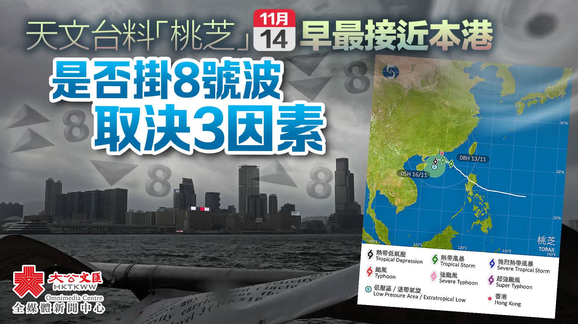 大公文匯全媒體報道,一號戒備信號現正生效,天文台會在今日(13日)下午1時至4時之間改發三號強風信號。高級科學主任李淑明今日上午在一個電台節目中表示,預計「桃芝」明早(14日)最接近本港,會在本港以南約200公里內掠過,天文台會視乎屆時「桃芝」的強度、烈風區與珠江口的距離及本地風力變化,評估是否需要改發更高熱帶氣旋警告信號。