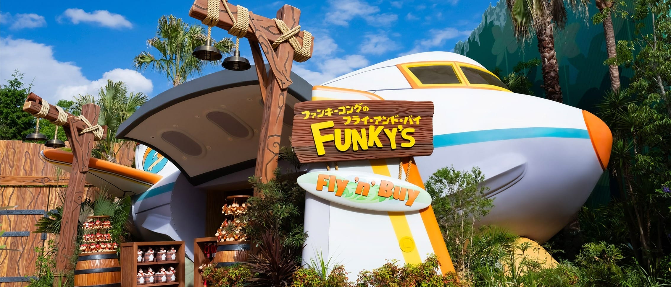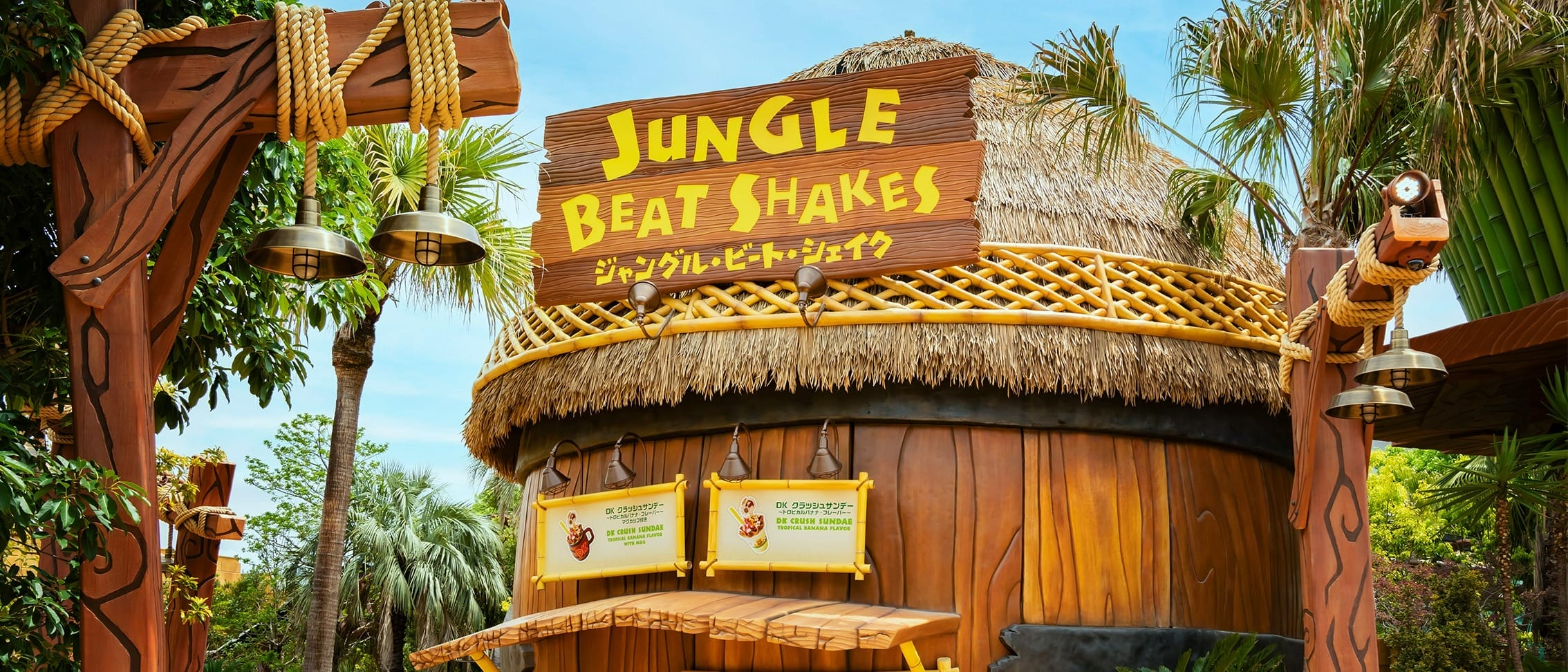 除了刺激的遊樂設施,「咚奇剛國度」亦設有專屬餐飲與購物選擇,例如餐廳「Jungle Beat Shake」提供以香蕉為主題的特製飲品和甜品。園區內還開設了「Funky Kong’s Fly and Buy」精品店,供應一系列咚奇剛及狄狄剛周邊商品。