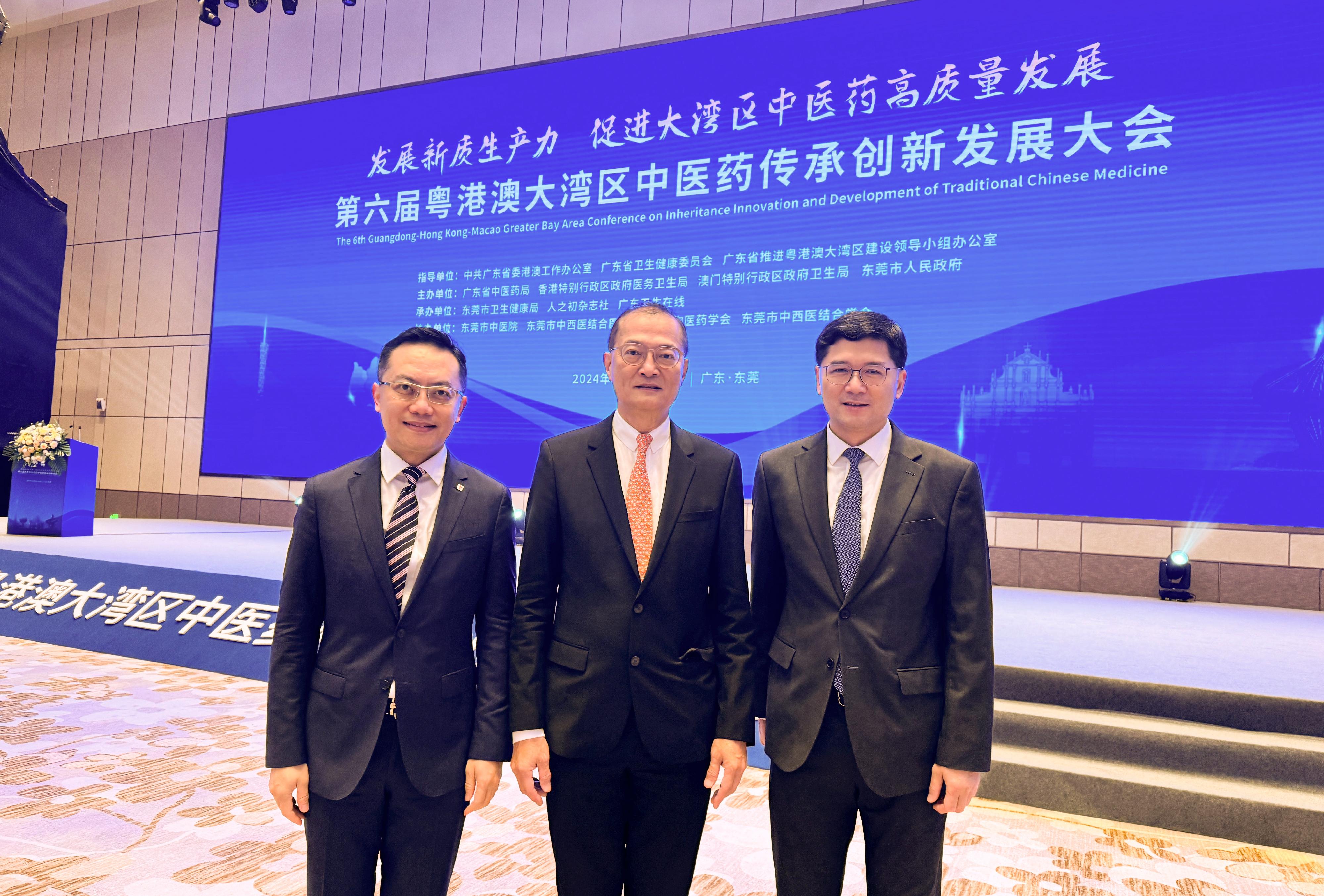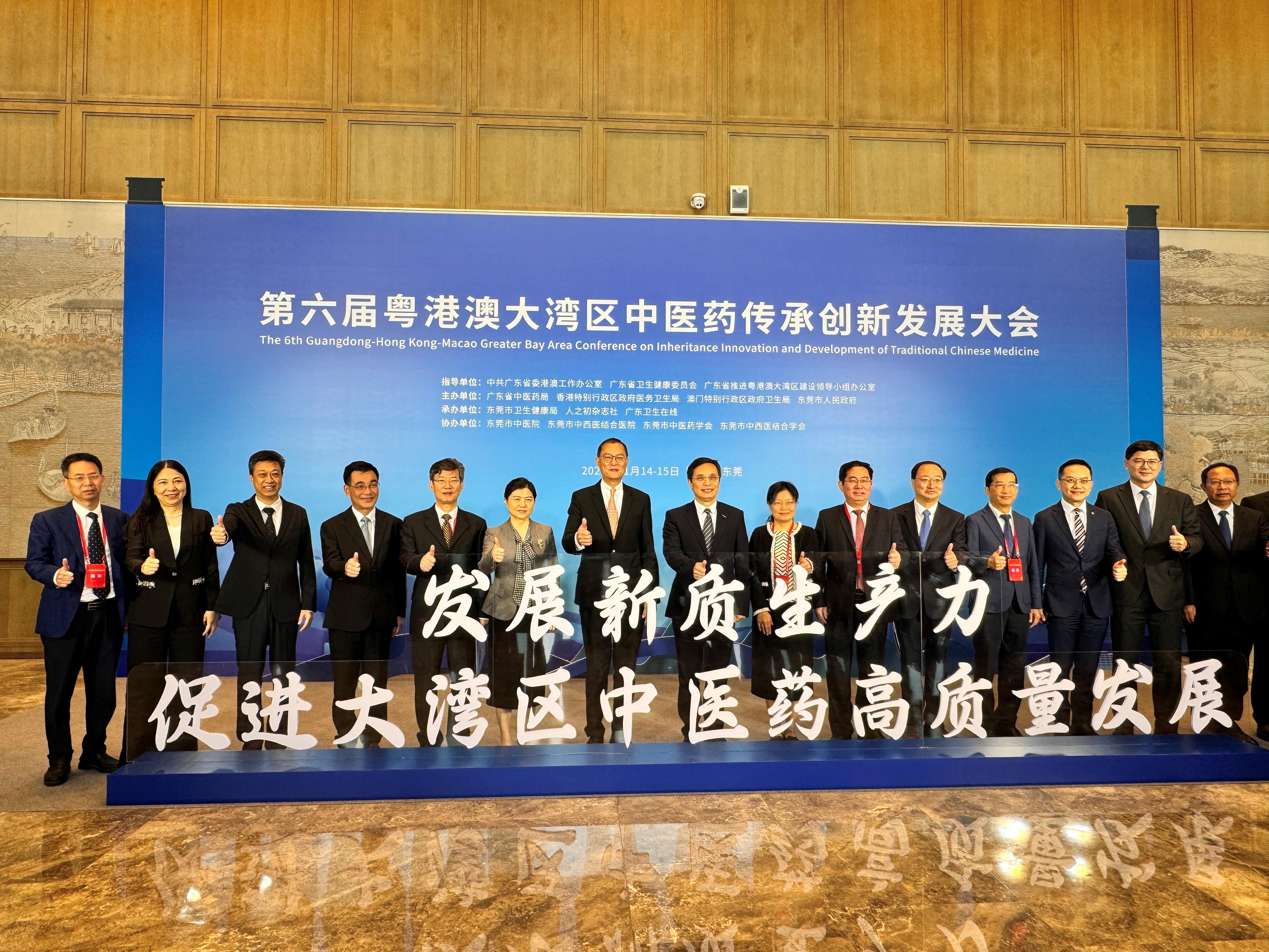 大公文匯全媒體報道,醫務衞生局局長盧寵茂今日(14日)在東莞出席第六屆粵港澳大灣區中醫藥傳承創新發展大會開幕式致辭時表示,今年大會貫徹落實二十屆三中全會的精神,以「發展新質生產力,促進大灣區中醫藥發展」為主題,持續推進及深化粵港澳大灣區中醫藥高質量發展。