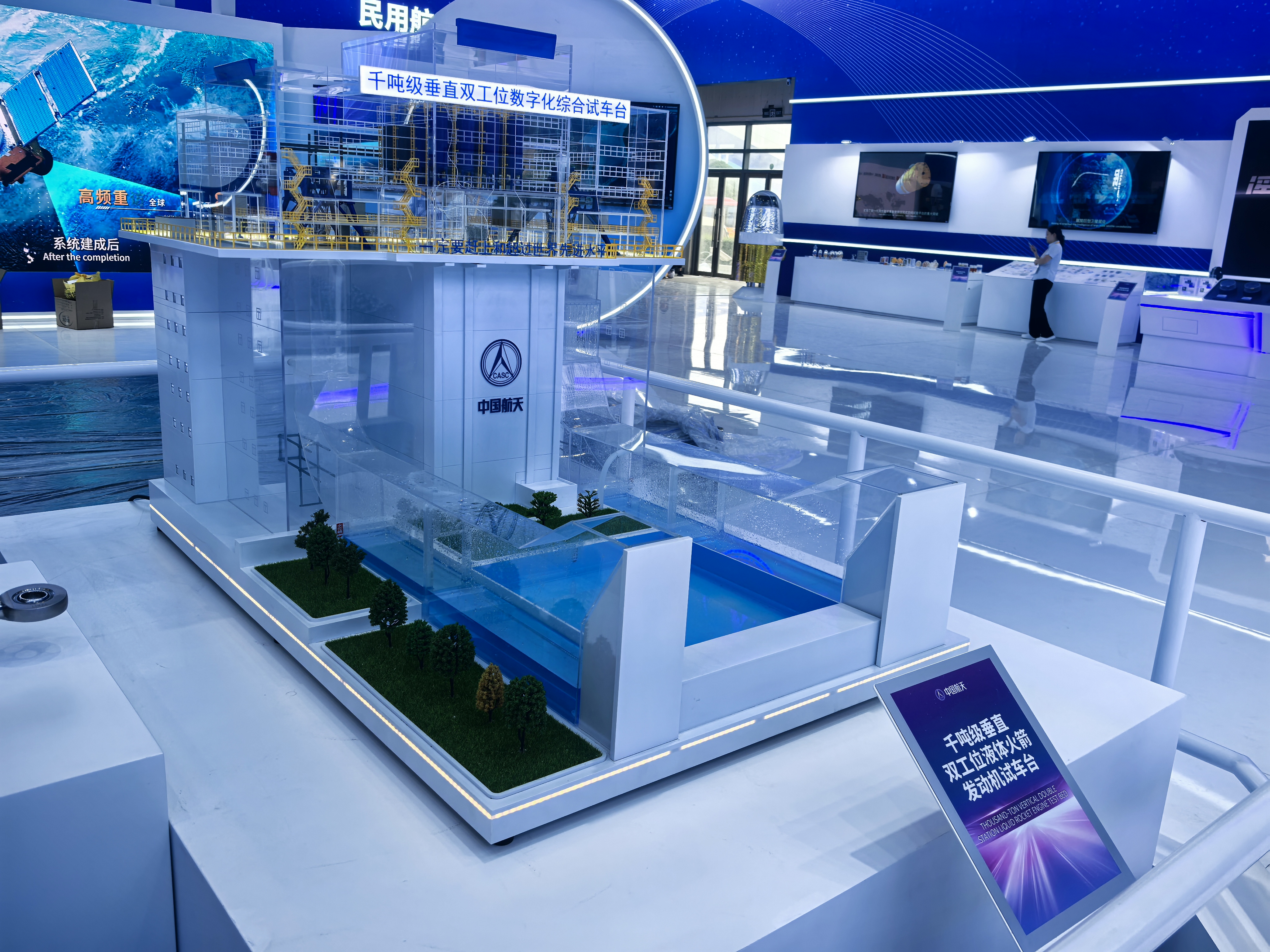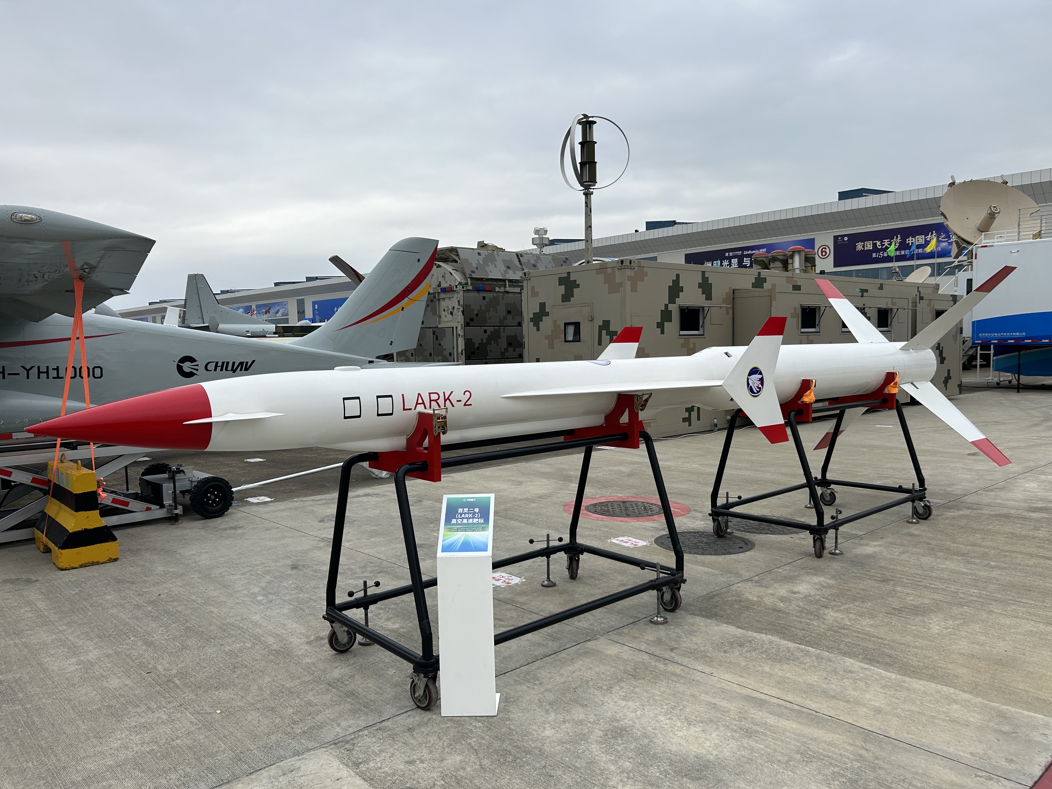 除了兩款用於商業航天的發動機外,航天六院承載我國大推力火箭發動機技術發展重任的千噸級垂直雙工位液體火箭發動機試車台模型也亮相展會;在防務展區,更有百靈二號(LARK-2)高空高速靶標,可為新型反導、反臨地空導彈武器系統研製定型和軍隊實戰化訓練提供靶試目標,也可為臨近空間的相關科學研究提供飛行試驗平台。
