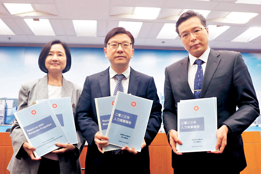 他表示,特區政府未來的三大工作方向,包括繼續適度引入外來人才和勞工,而政府、僱主和持份者都要探討提升生產力,優化僱員工作安排和加強在職培訓及支援的方案,並吸引潛在勞動力投入市場。院校和培訓機構亦要提供更多與市場新需求匹配的培訓,應對未來的需求。