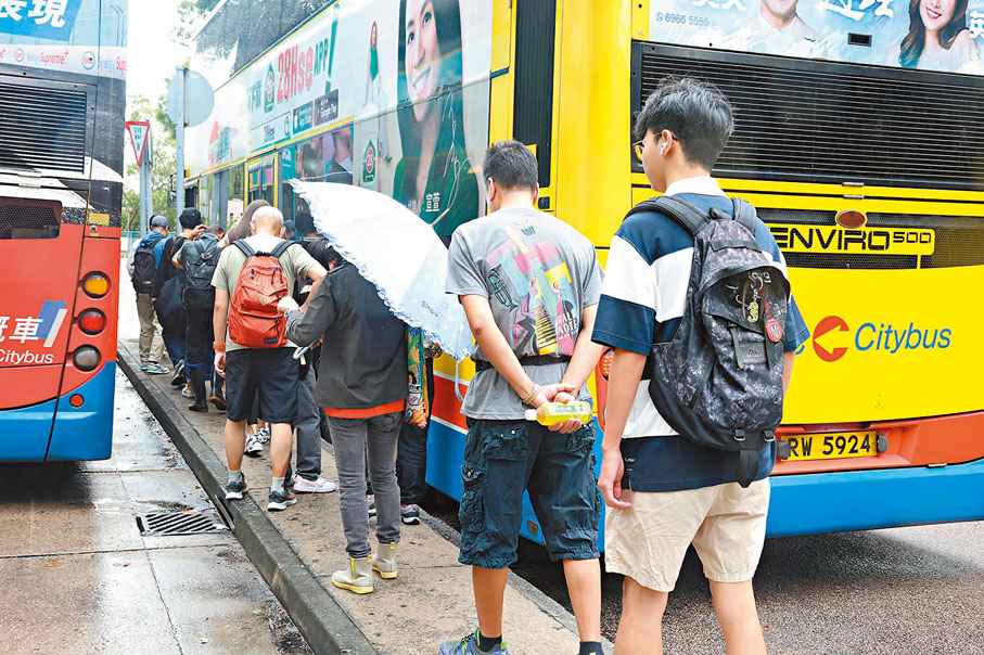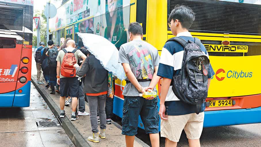 在改發三號風球後,巴士站及轉車站出現候車人龍,部分站點人龍更排上天橋,港鐵部分轉乘點及人流繁忙的站點,同樣有大量市民排隊搭車。由於天文台預早兩個多小時提醒「落波」,市民陳小姐稱讚天文台的通報安排,令她可有足夠時間安排出門。曾先生及劉先生表示,昨日交通安排還好,「搭車冇話唔方便。」