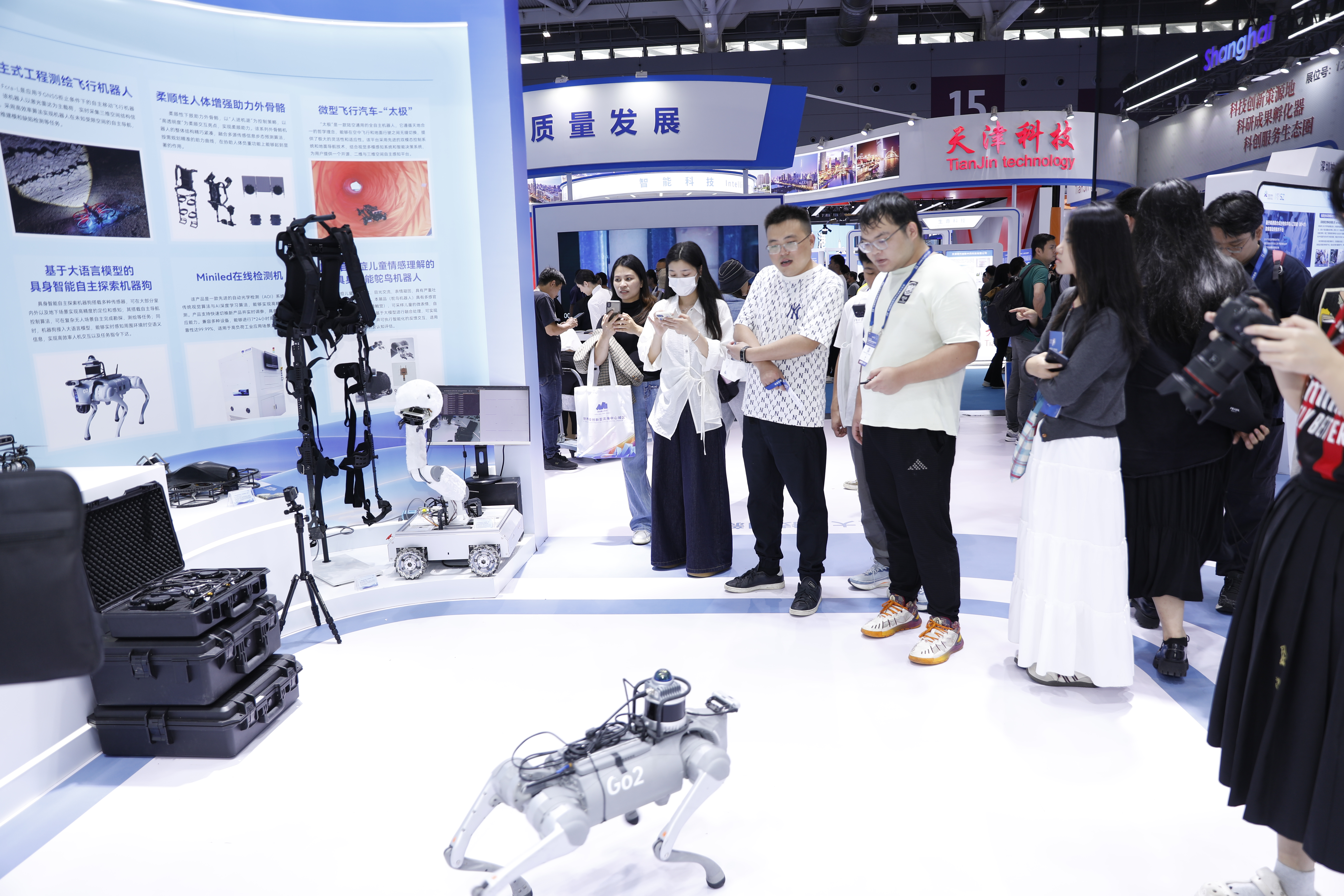 此外,本着「互動體驗、身臨其境、熱愛科學、科技社交、趣味打卡」的展館設計思路,此次光明區參展展品也更具「科技性、展示性、交互性、趣味性」——「陸空通用」可交互全自主智能機器人、用意念就能操控的UFO等高科技產品吸引了眾多參觀者駐足體驗。參觀者通過一些科技社交和趣味打卡,近距離與高科技親密接觸,在深入了解光明區科技創新成果和產業發展的基礎上,也深刻感受科技帶來的無限樂趣和魅力。