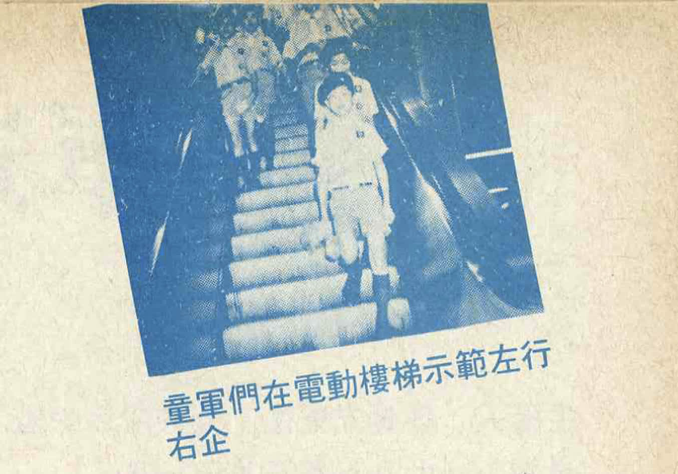 此觀念又是何時開始深植於香港人的印象中呢?這也許要追溯到1985年。根據《香港童軍》第51期的紀錄,1985年4月,香港童軍總會以「童軍踏出青春步」為口號,與香港電台聯合舉辦了一場「上落電梯,左行右企」行人禮貌運動。當時,200多名童軍和領袖,與港台主持人組成四支宣傳隊伍,分別在沙田火車站、荃灣、尖沙咀和中環地鐵站內派發書籤及襟章,並示範「上落電梯、左行右企」的禮貌行動,現場還有張學友等藝人演出、觀眾搶答環節,香港電台更實地轉播,將這份歡樂與訊息傳播到全港各角落。