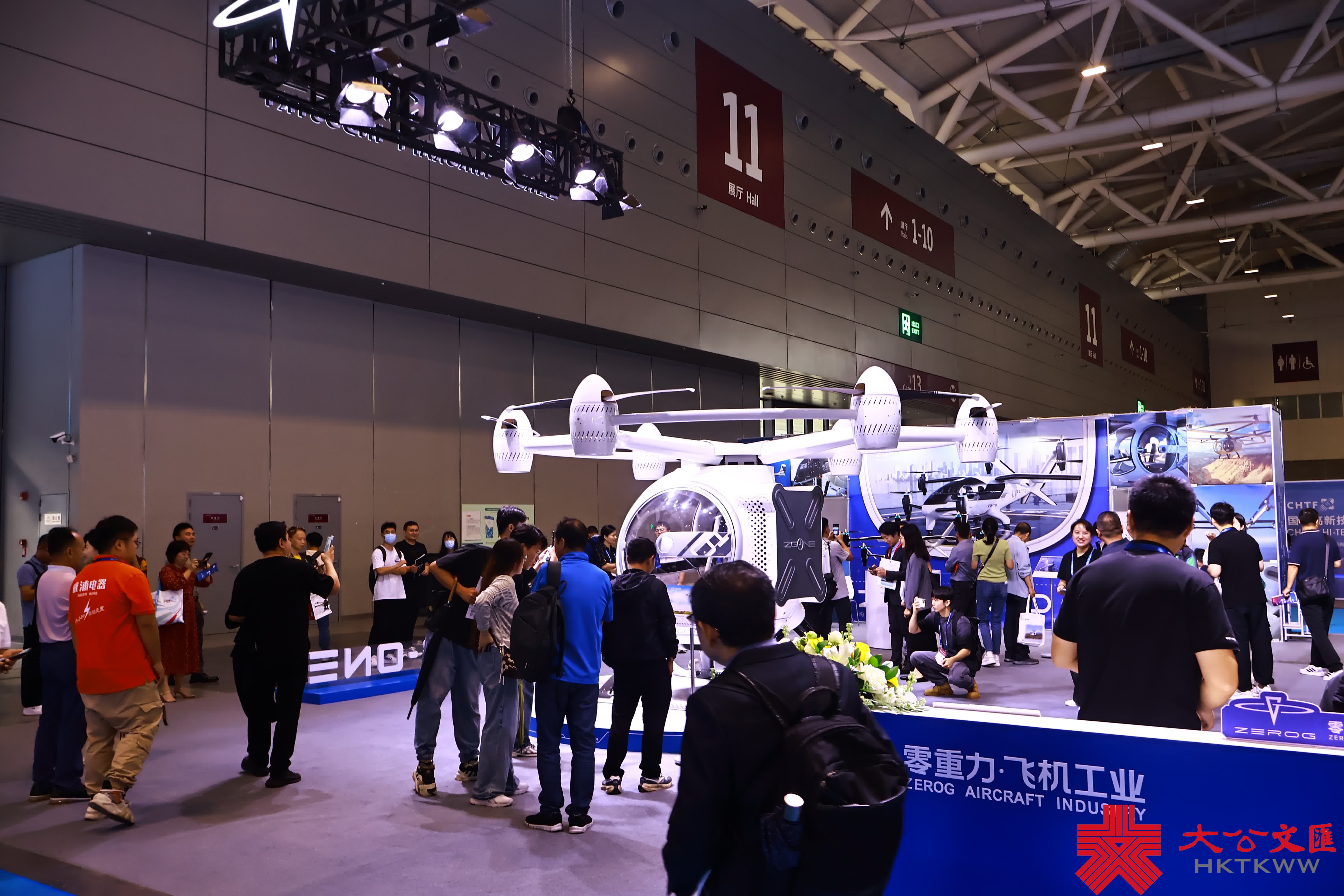 第一次參加高交會的零重力飛機工業有限公司攜多款無人機產品亮相高交會,eVTOL飛行器前來來往往圍滿了打卡、洽談的人。工作人員向大公文匯網記者介紹,「零重力首款載人eVTOL飛行器基於低空旅遊、應急救援場景,可飛行25分鐘,最高飛1000米,充換電僅需5分鐘,售價200多萬人民幣,目前已經收到了超千架訂單。」他表示,零重力公司着重構建地球上第三種交通生態,可以簡單理解為「直升機的替代品」。