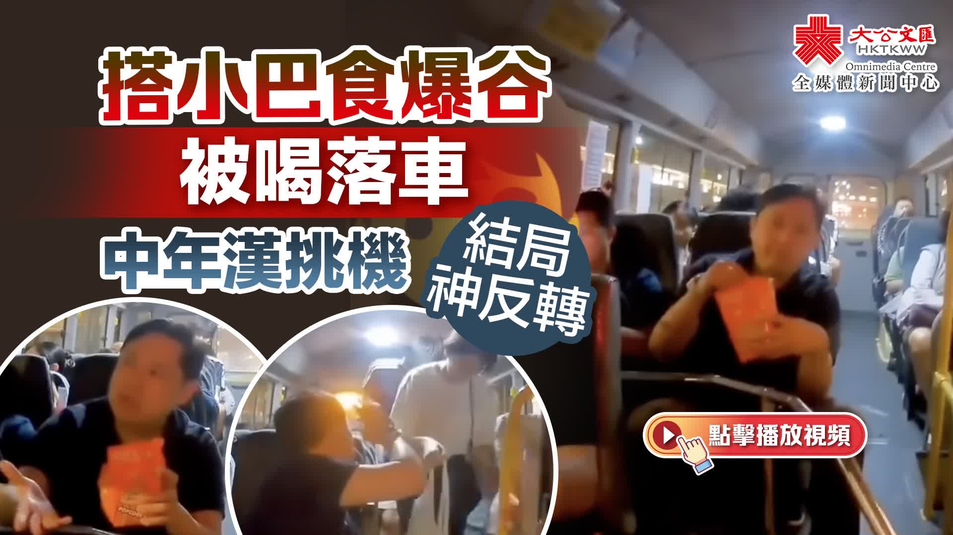 大公文匯全媒體報道,近日網上流傳一條長約7分鐘的小巴車CAM片,一名中年男子無視司機多番勸喻食爆谷,甚至態度囂張表示:「邊個位話畀我聽唔可以食嘢呀?你吹得我脹呀!」司機忍無可忍下決定停車,車上乘客更一面倒指罵「爆谷哥」,「公共交通工具係唔食得嘢㗎啦,你識唔識㗎?」