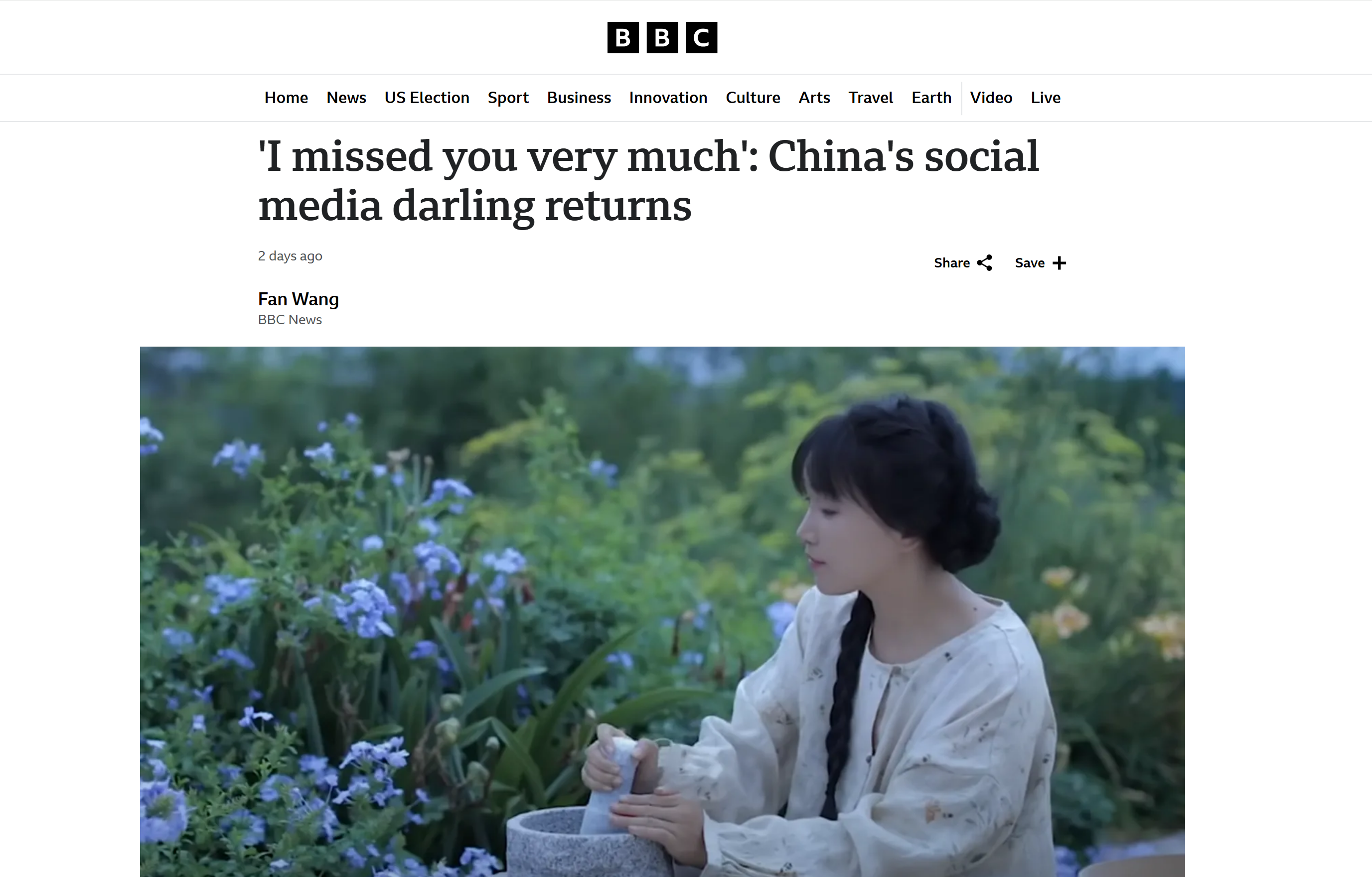 這篇題為「『我很想念你們』:中國社交媒體的寵兒回來了」的報道中,不斷地給李子柒打上「中國政府」和「中國共產黨」的標籤,聲稱她能夠在自媒體行業取得成功是因為得到了中國政府的「許可」,質疑她的影片是中國官方對國外的「軟性政治宣傳」,僅僅因為她田園牧歌式的影片內容呼應了我國對於弘揚優秀傳統文化的號召。
