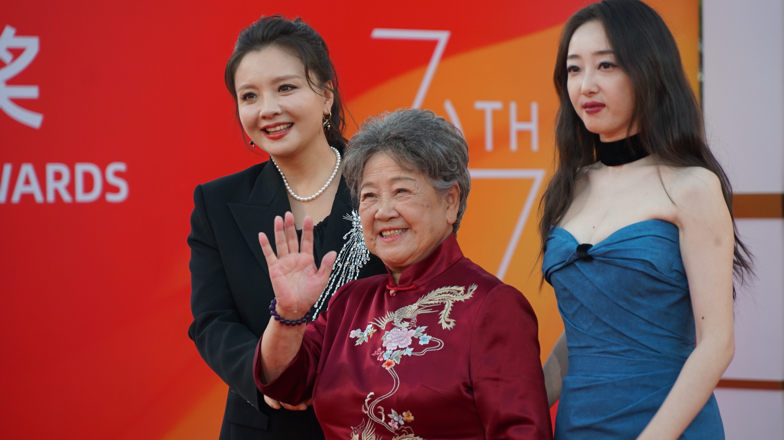 關曉彤亮相金雞獎閉幕紅毯儀式上,酒紅髮配粉黑撞色抹胸裙造型搶眼,盡顯成熟美;佟麗婭亮相金雞紅毯時一路與斯琴高娃手牽手,其粉色花型抹胸裙嬌俏迷人。